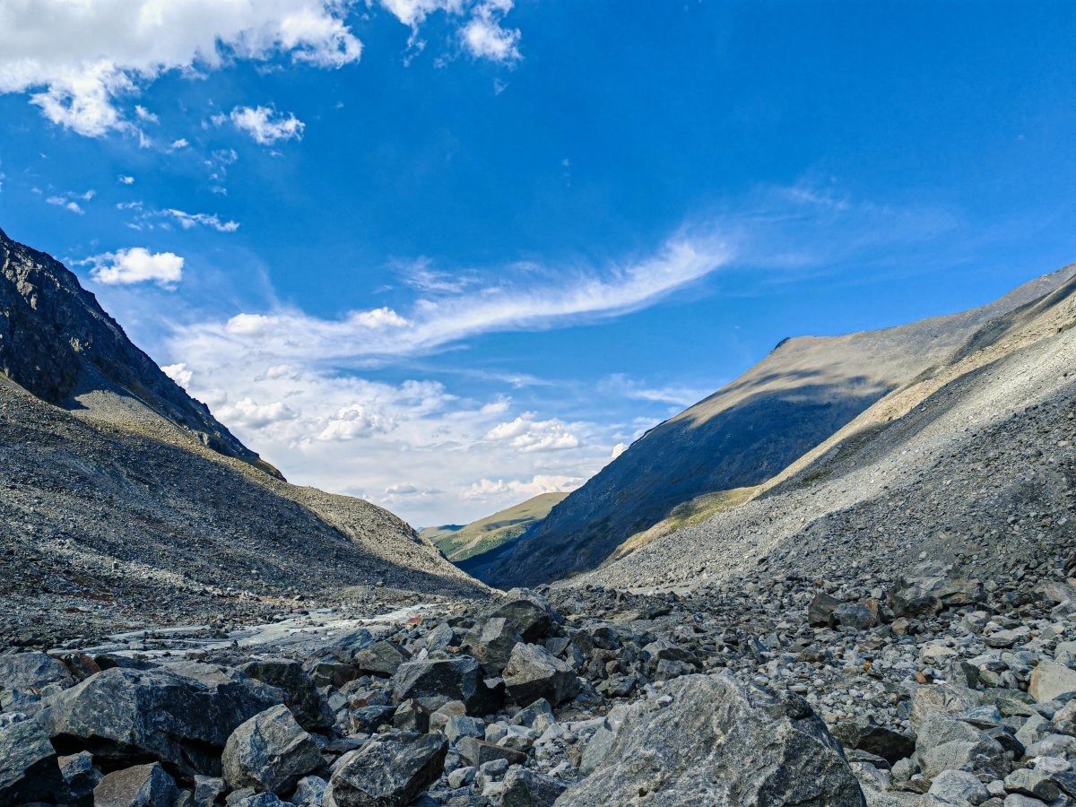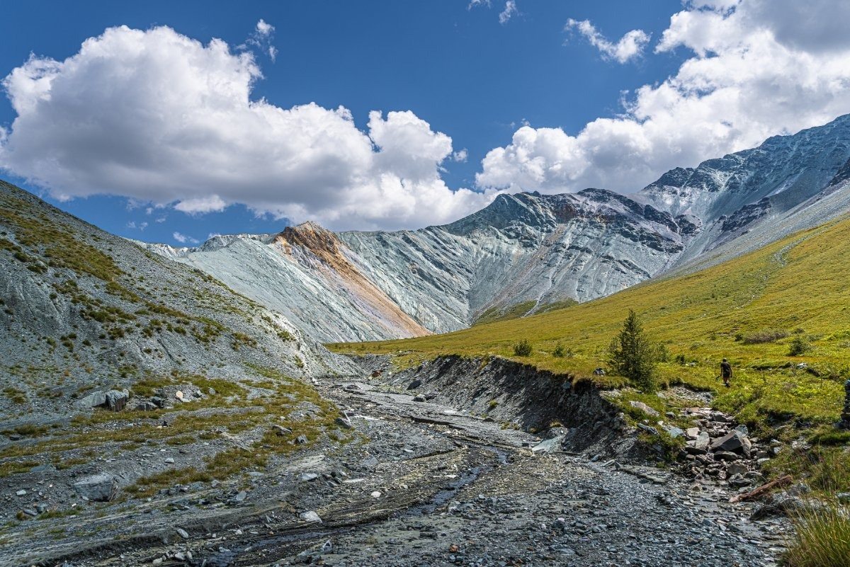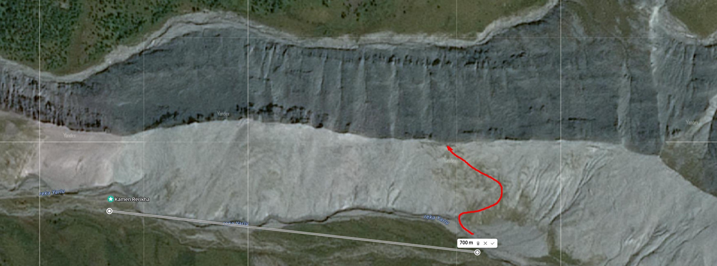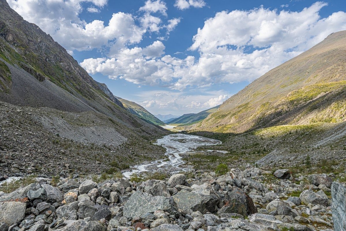 The valley is approximately three kilometers (along the trail) from the Akkem River and Lake Akkem – here:
