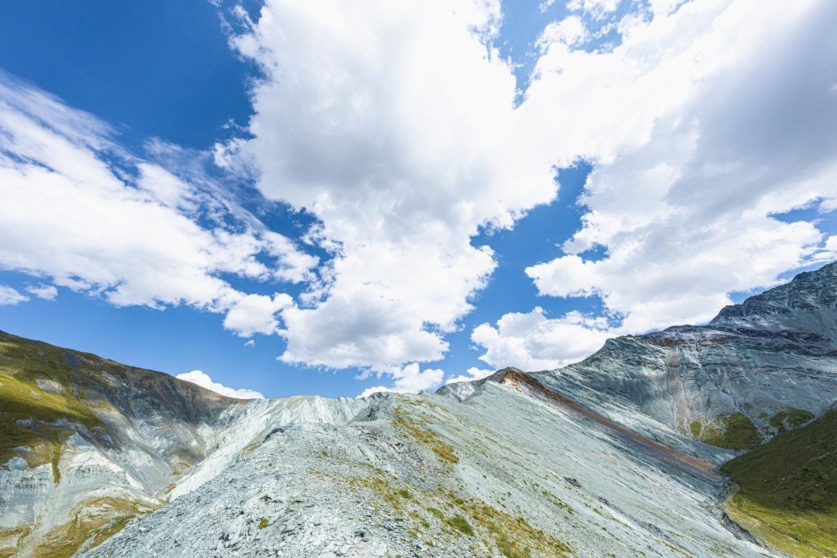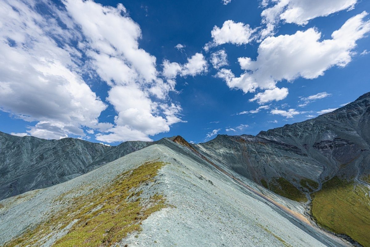 It’d be great to traverse the whole central ridge and get up to that shelf at the other end, but, unfortunately, without proper mountain gear and training it’s extremely risky. In at least two spots along the colorful ridge it’s just impassable. Most people start up the ridge from the bottom (there’s a well-worn path there), make it through about a third, and then an impassable section stops them (perfect for a photo session/selfie break), and then everyone usually heads back. We’d done this twice on previous trips, but this time we tried something different… and found an alternate route! You can actually get up to the far end of the ridge via a grassy area that nature has kindly laid out on the southern slope roughly 700 meters from Gorodok: