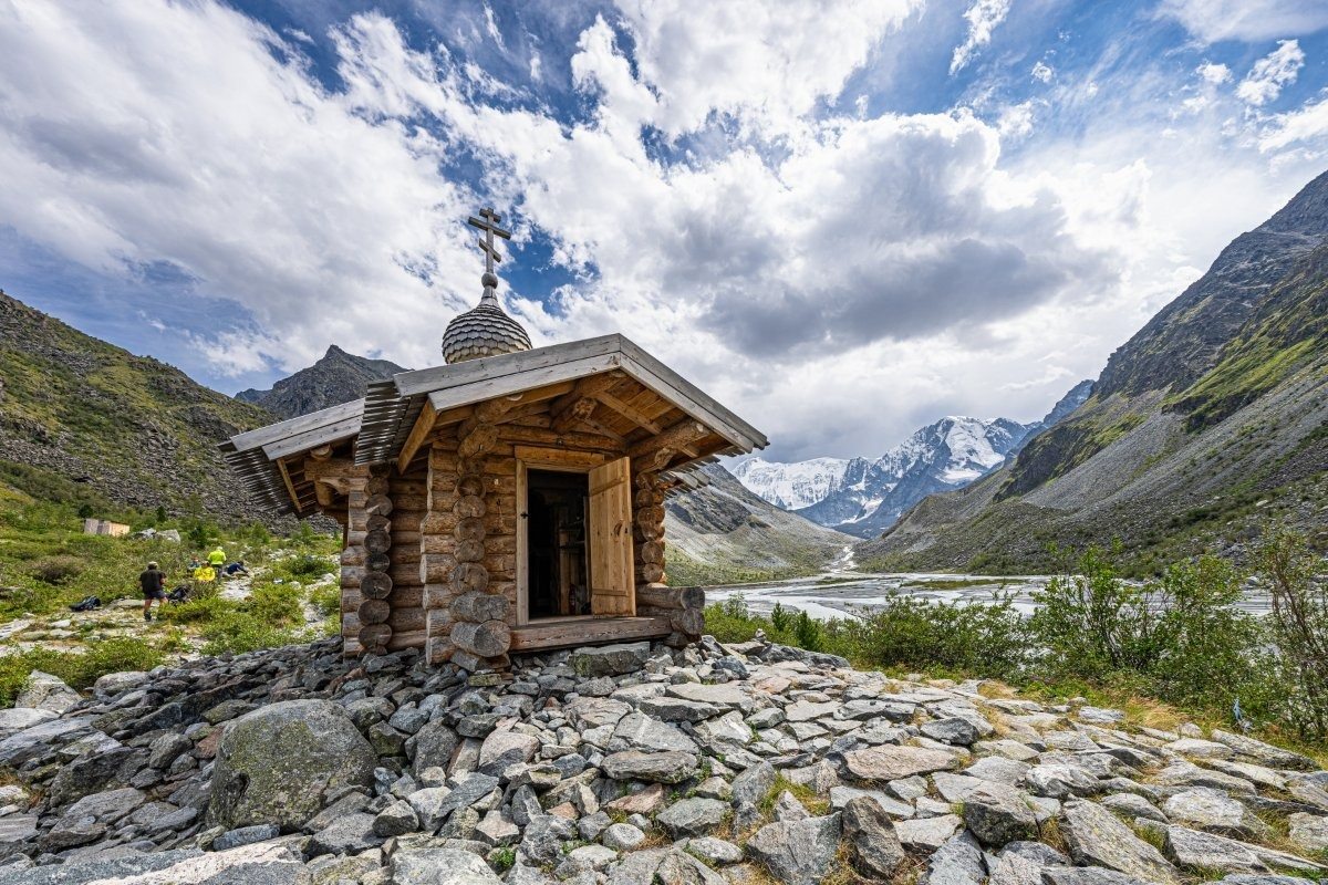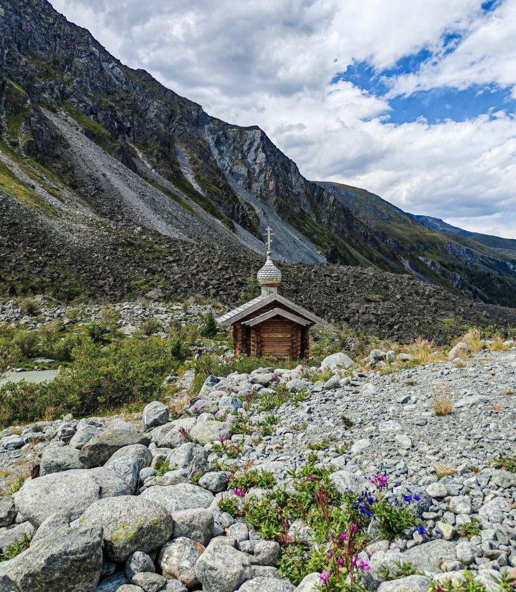 We reached the chapel built in memory of fallen mountaineers, which stands between Lake Akkem and the glacier of the same name. From here, some pretty tough and often risky ascents toward Belukha Mountain began: