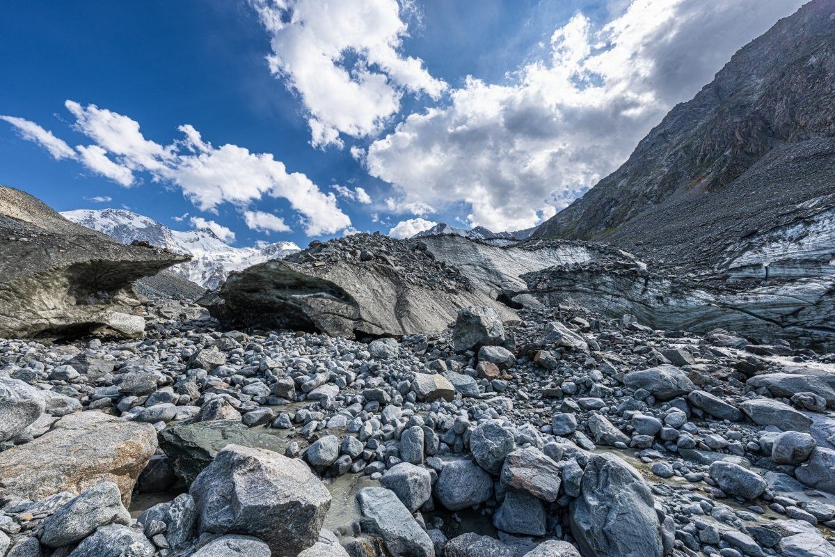 To reach the real icefields and get back all in one day from the lake – that’s a job for superheroes who can leap across endless fields of rocks of all shapes and sizes. As for us, this is all we saw of the glacier: