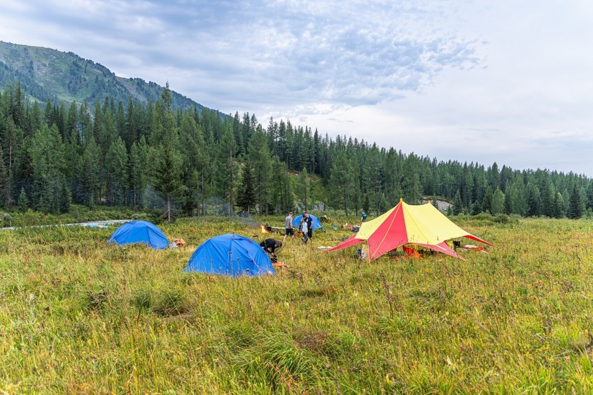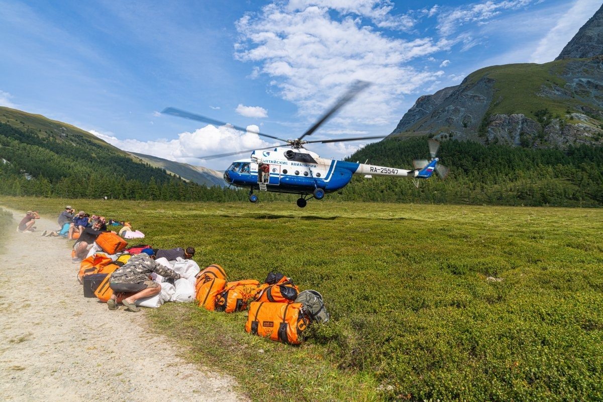 Alas, they set us down on the right bank. The helicopter crew told us that from the meadows on the left bank they might not be able to take off. Too bad – the meadows on the other side are nicer and a bit more comfortable…