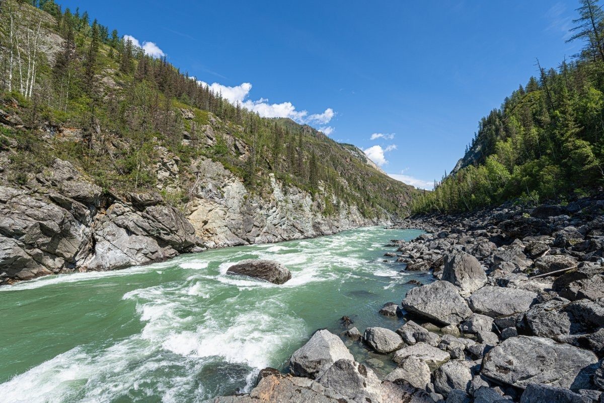 It’s a truly spectacular sight where the gray water of the Akkem meets the turquoise flow of the Katun: