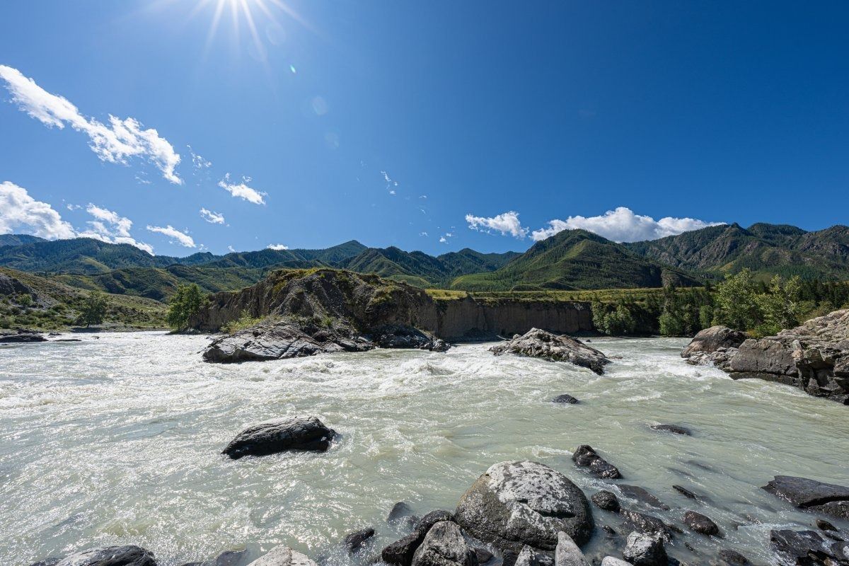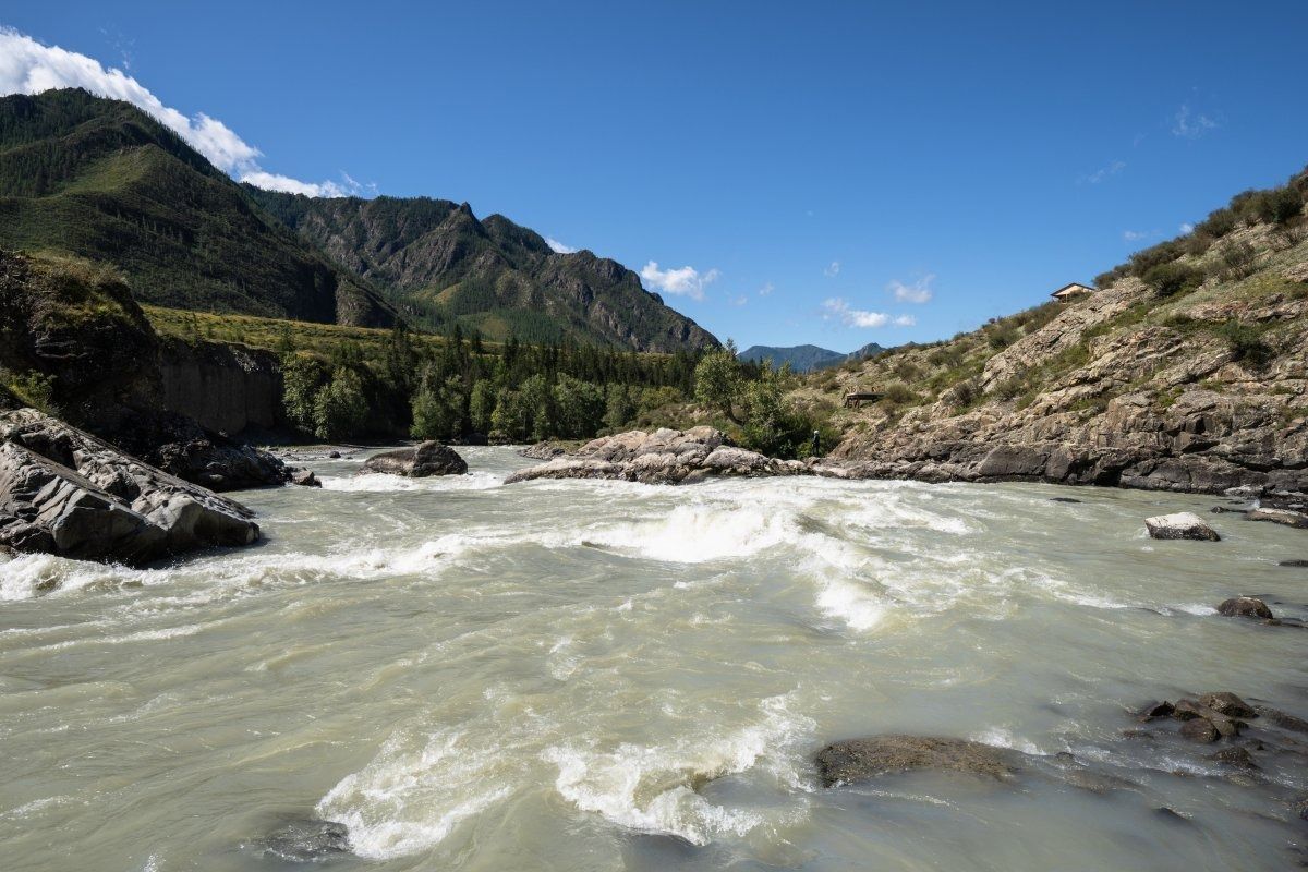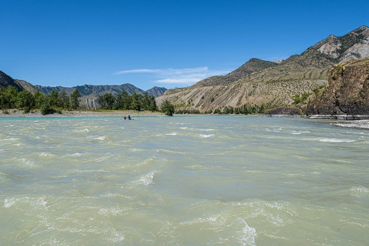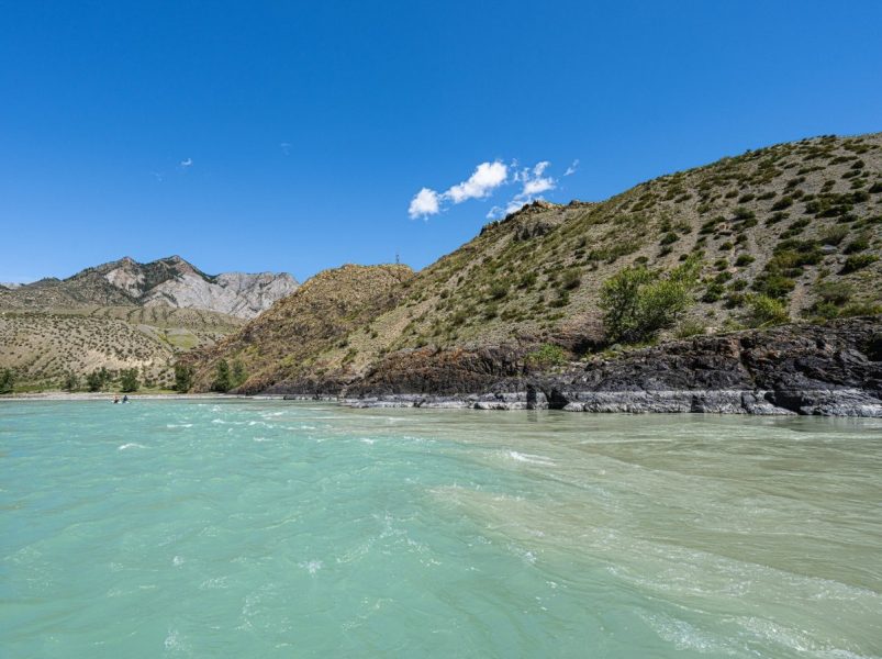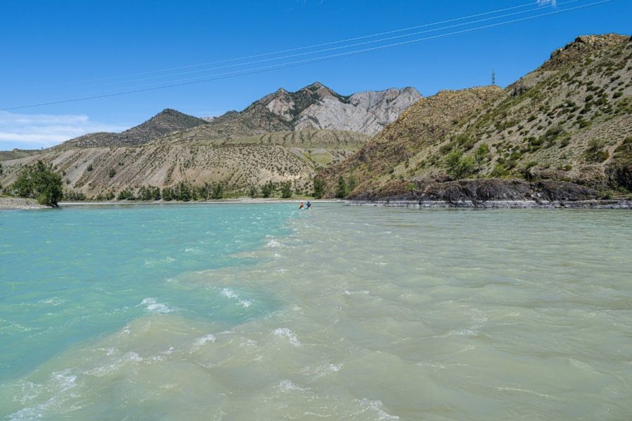The Katun’s water is turquoise, the Chuya’s is gray. When they flow together here’s what you get: