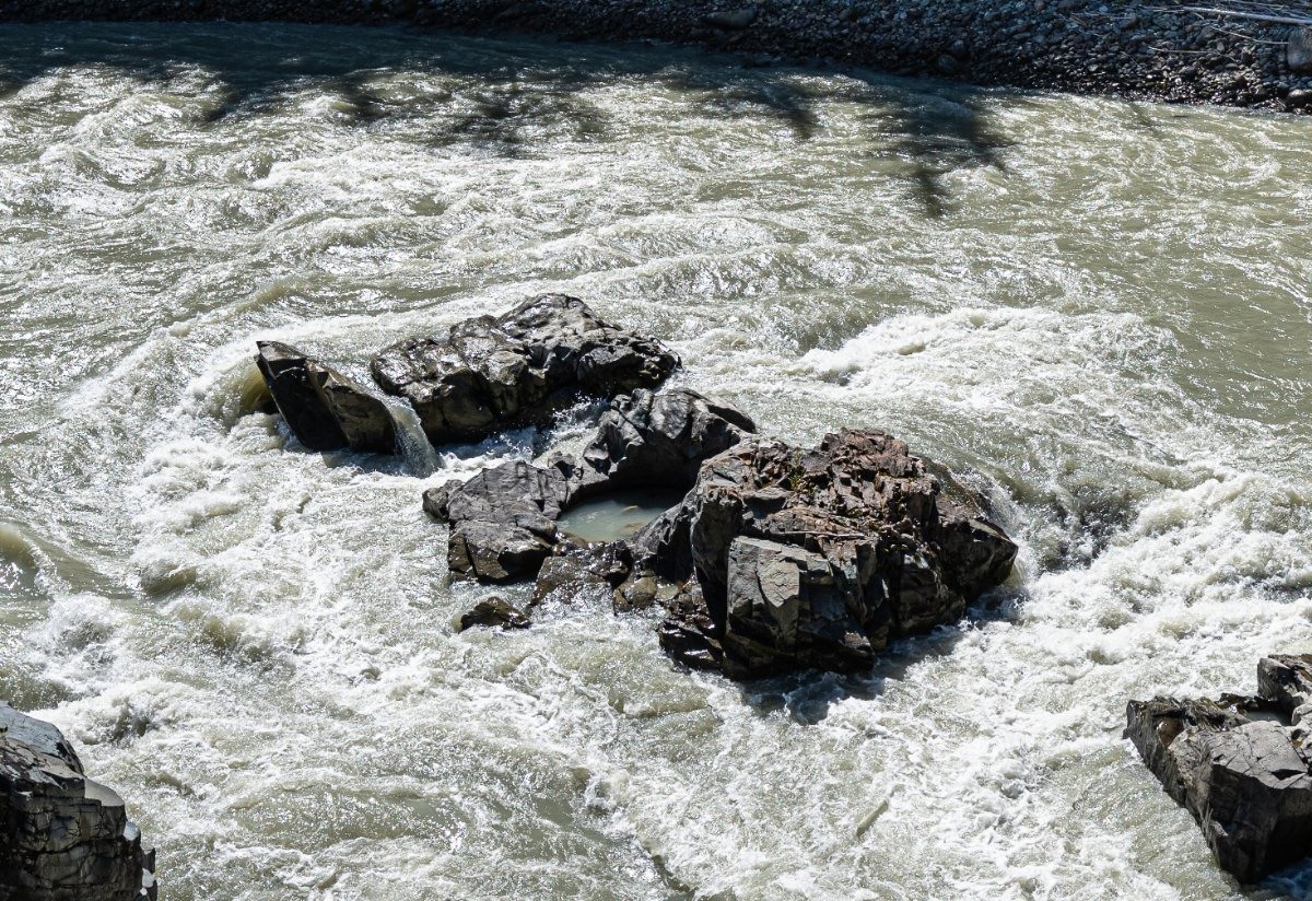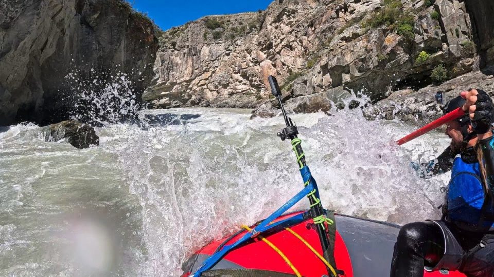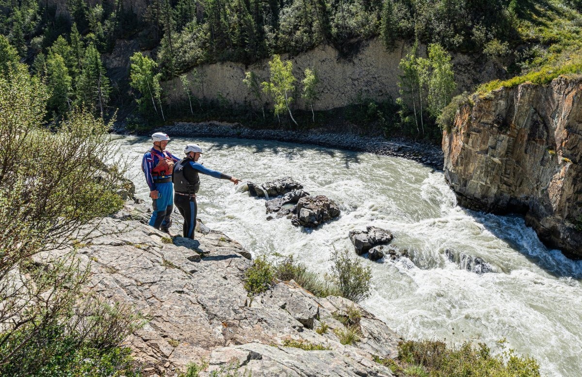 We always pull over to scout rapids first. Curiously, rafting through rapids like these only takes a few minutes, while rafting down a cascade (like the Akkem Pipe) can take 10–15 minutes; you spend much more time just reccy-ing them from the riverbank. Actually, it’s a lot like those fancy waterparks: the water slide itself is about a minute (if that) of fun, but you could be waiting in line for it for over an hour!…