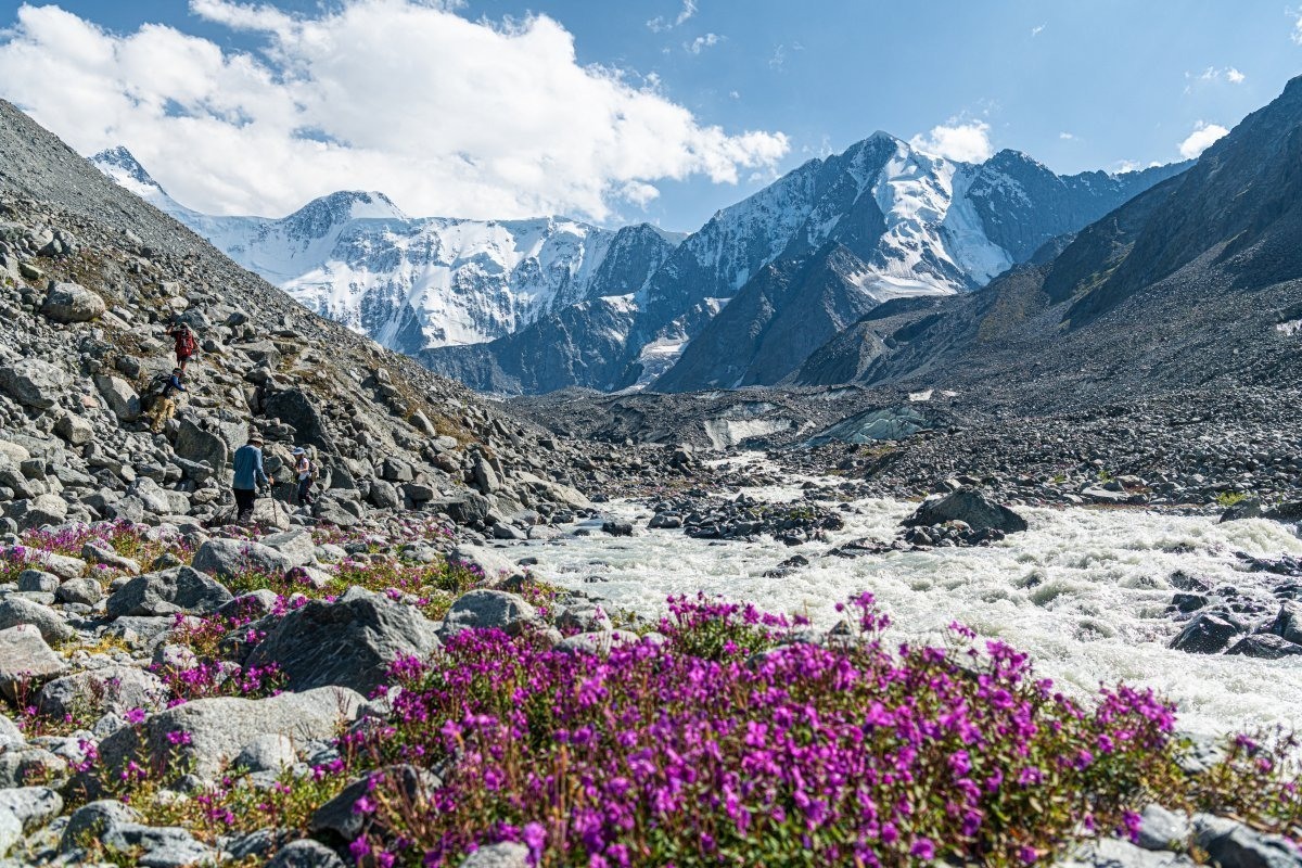 Now, there’s “hiking” and there’s “trekking”. Meanwhile I’ve come up with a new difficulty category: “wrekking” – as in: leg-wrekking. The walk to the Belukha glaciers definitely belongs in this third category. That said, the scenery is spectacular ->
