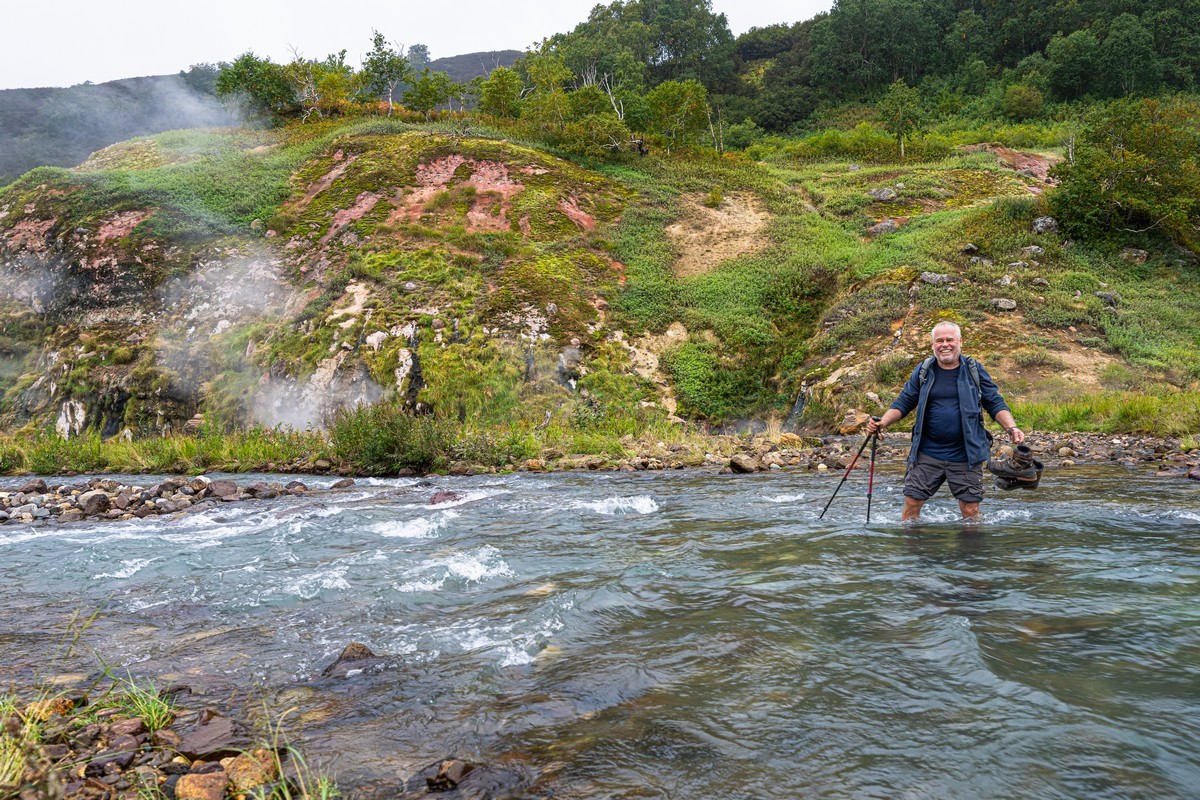 (iii) Our trek from Uzon to the Valley of Geysers (exploring a creek where tourists usually aren’t allowed);