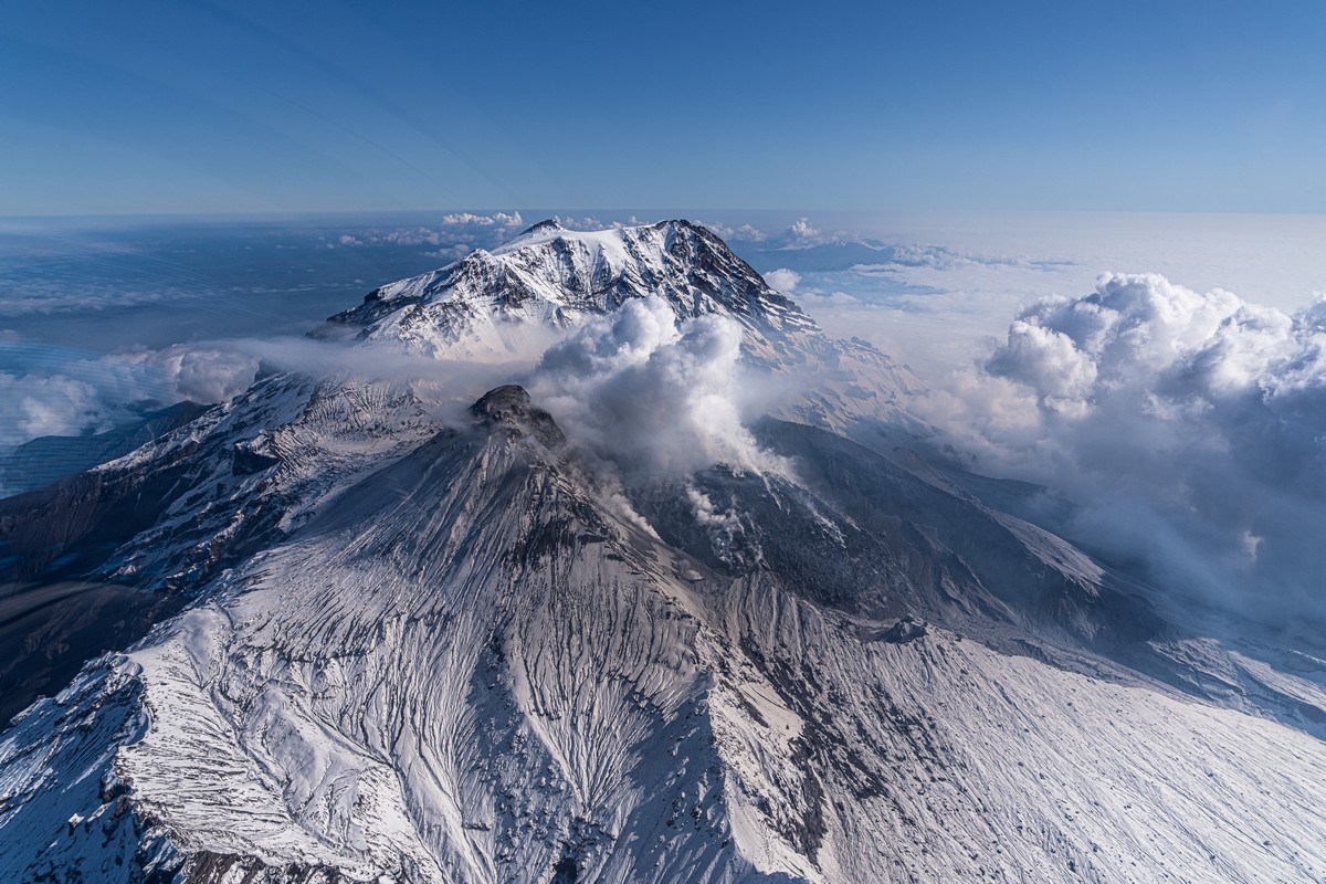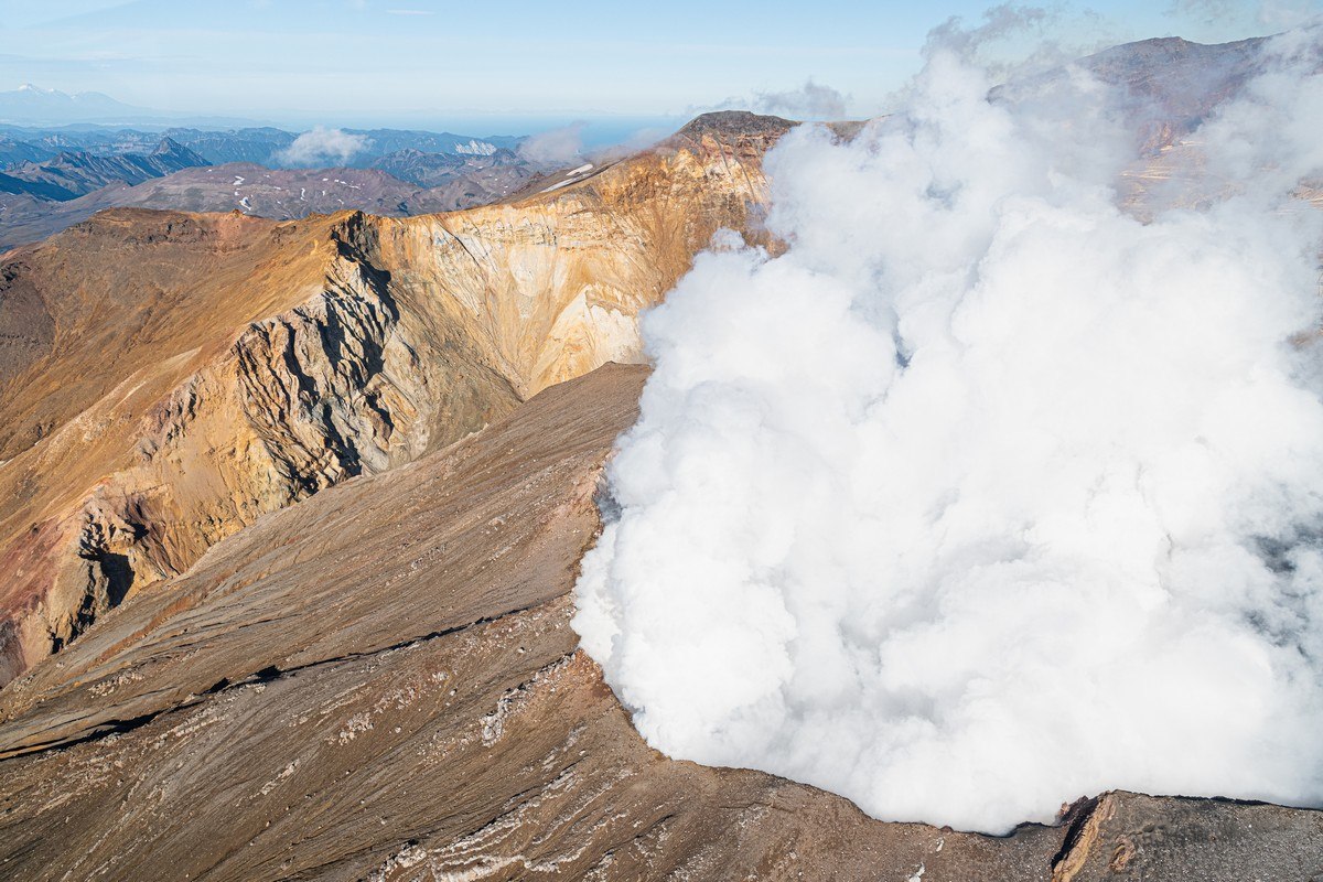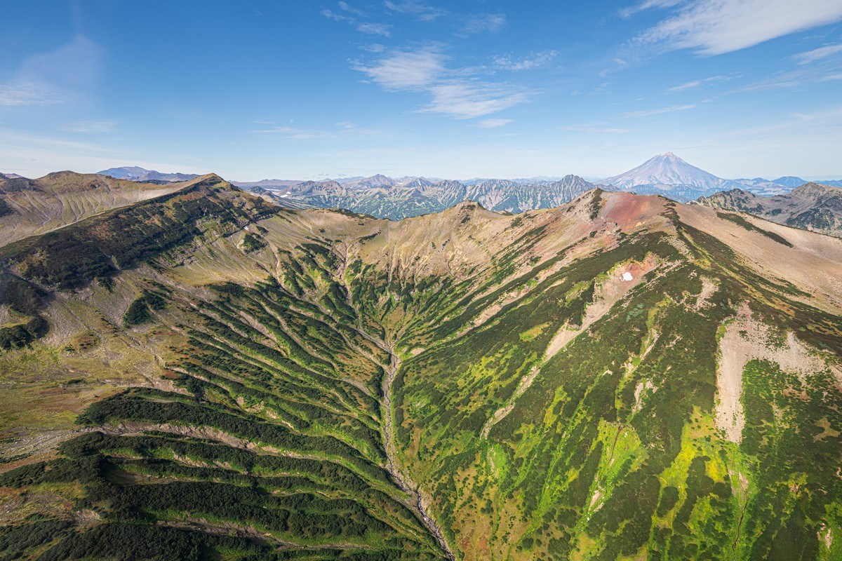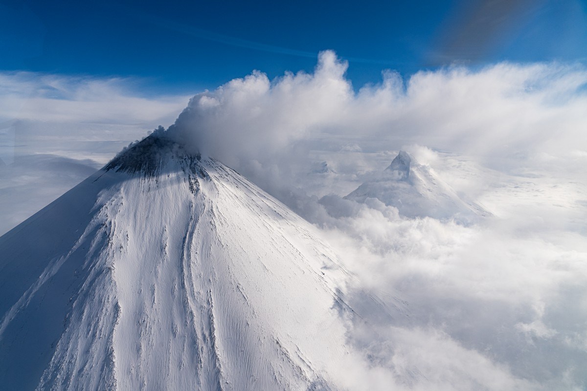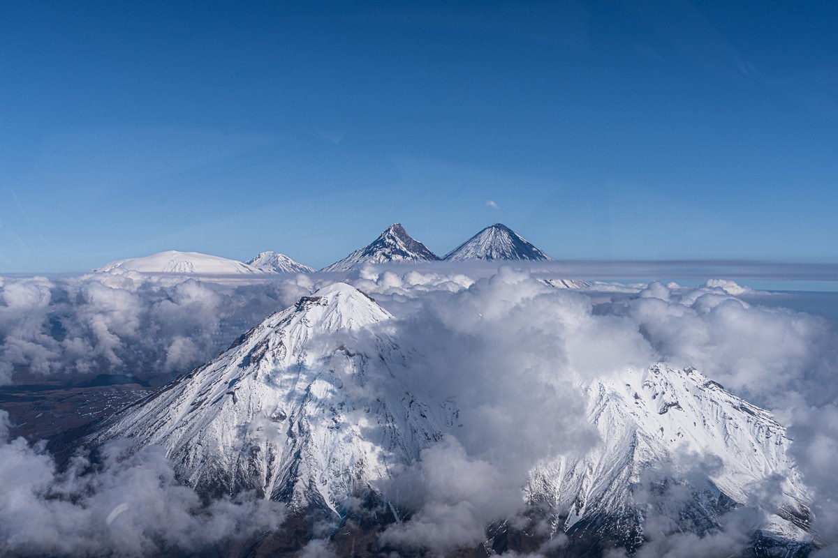 On our last day, when we flew down the coast to southern Kamchatka, the skies cleared completely: