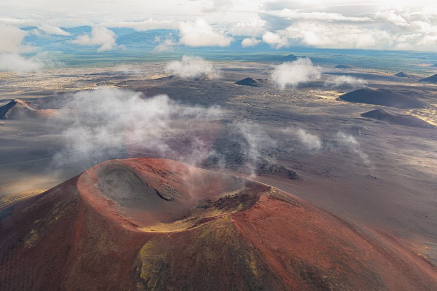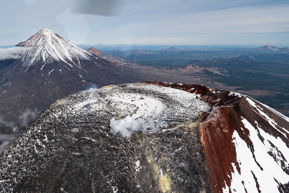 By evening the weather improved, and we managed to fly out to Klyuchevskaya Sopka.