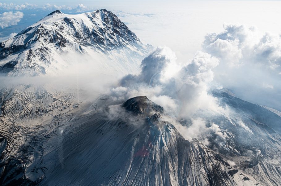 Krasheninnikov erupting – though you can’t see it since it’s hidden behind clouds: