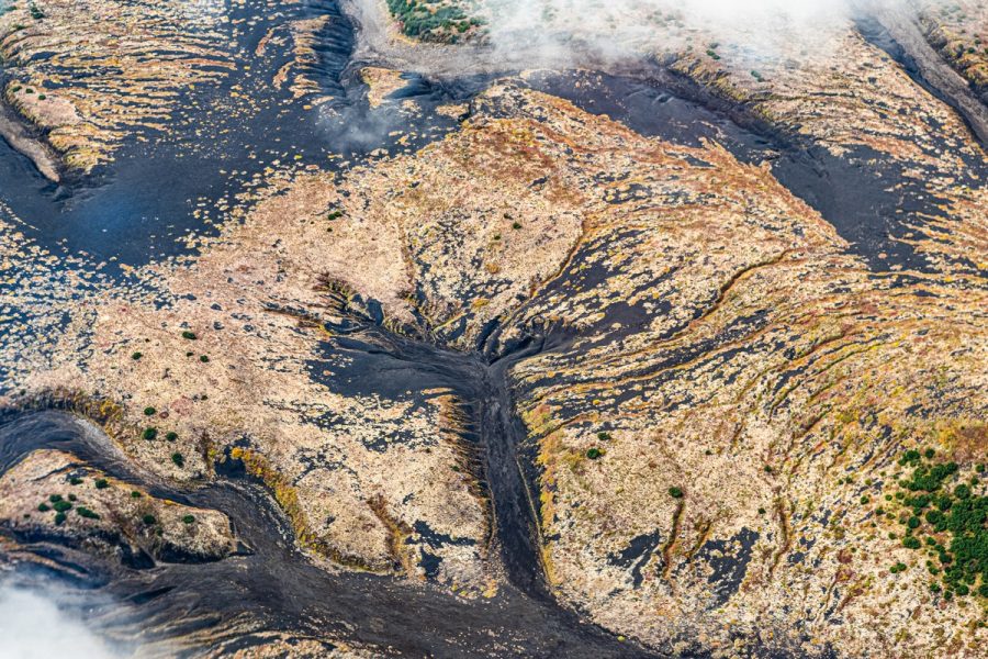 The following day, the rain stopped, but the clouds still hung low, keeping us grounded instead of on our planned helicopter tours. We lingered till noon, then flew on to our next camp – unfortunately postponing our visit to Shiveluch volcano.