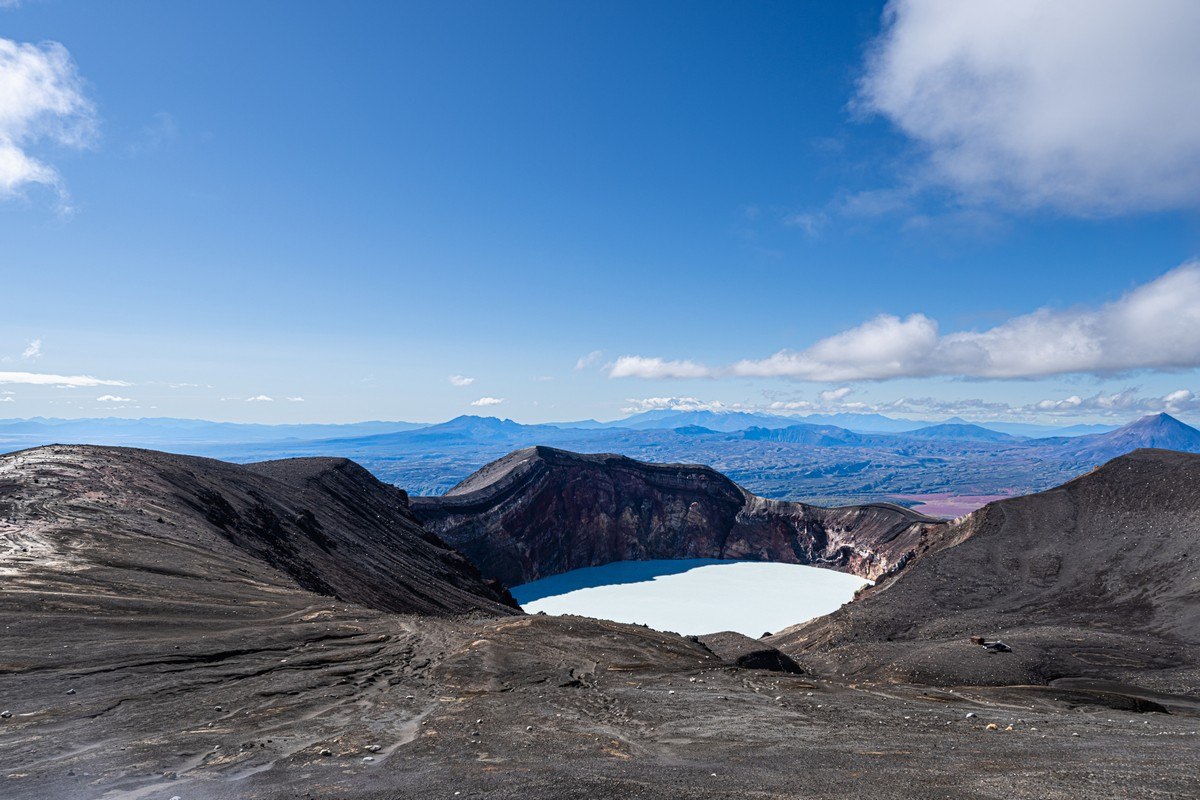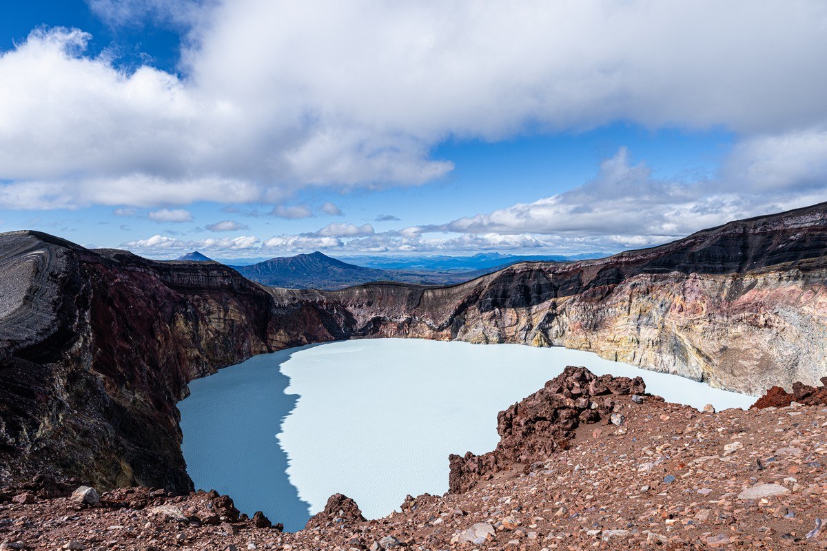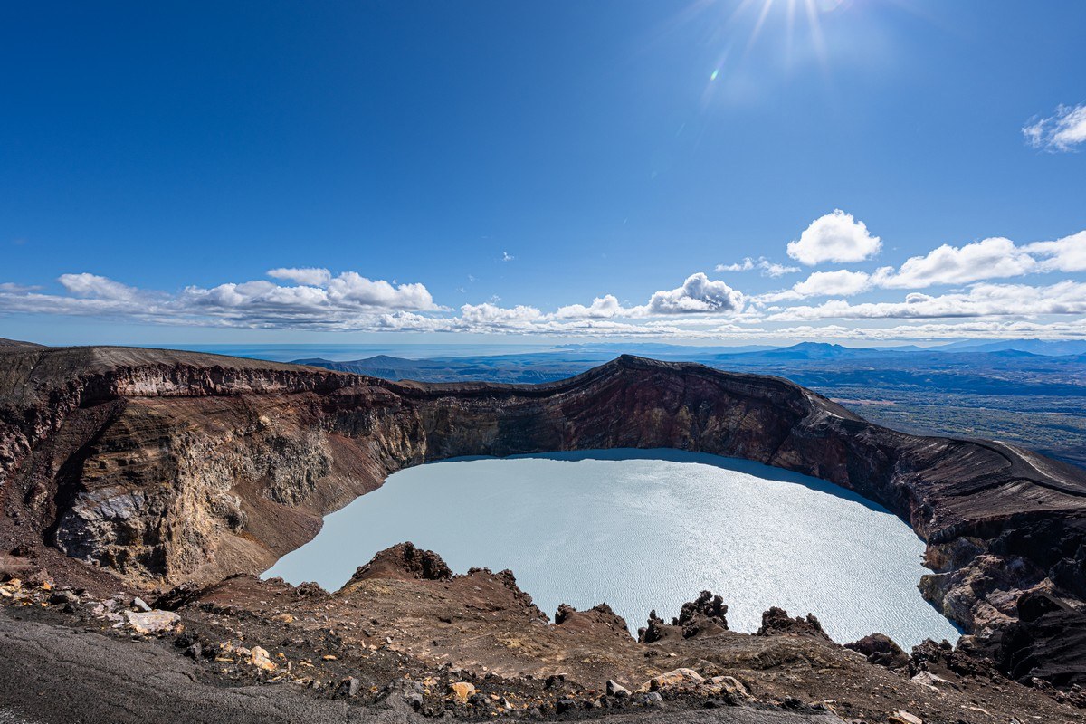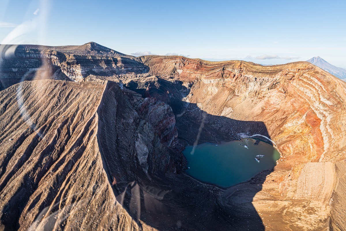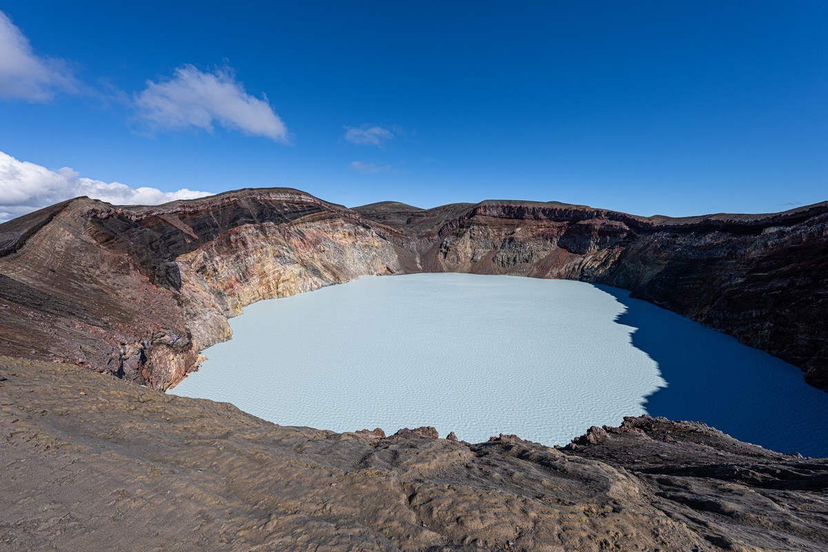 Kamchatka truly abounds in natural beauty, and here’s another precious gem in its impressive crown: the Maly Semyachik volcano, whose main feature is its rather sizeable crater (~800x900m), which cradles a stunningly colorful lake: