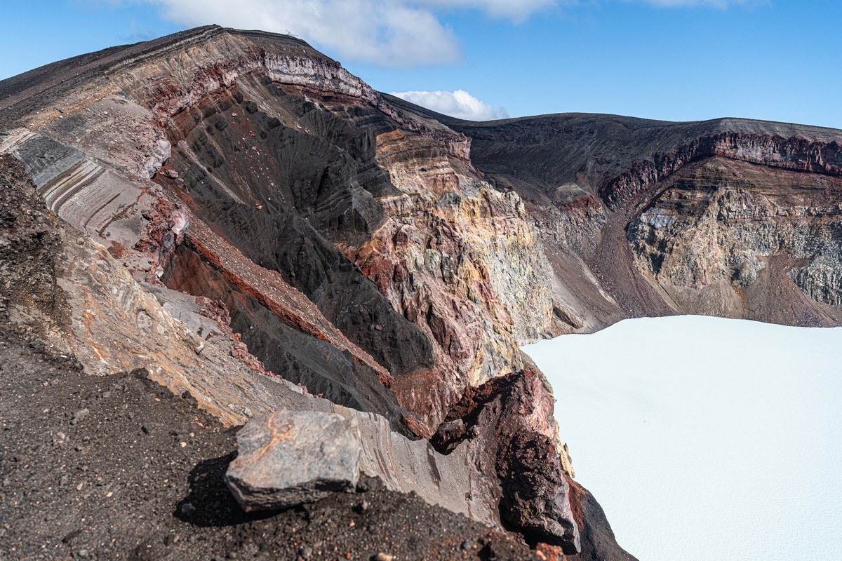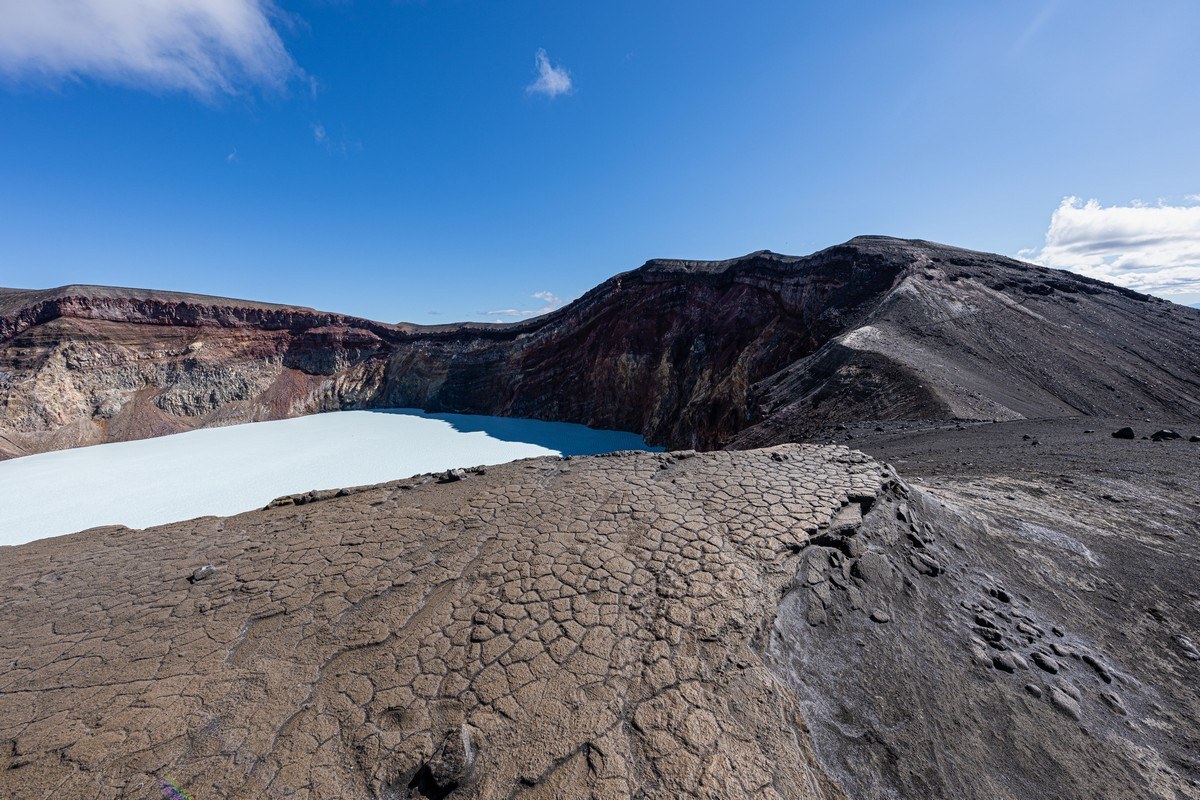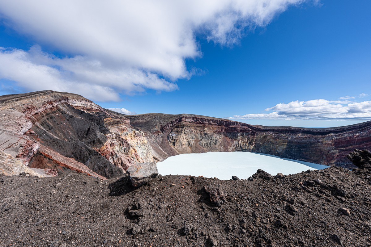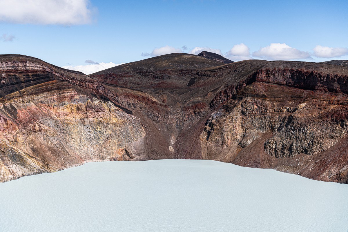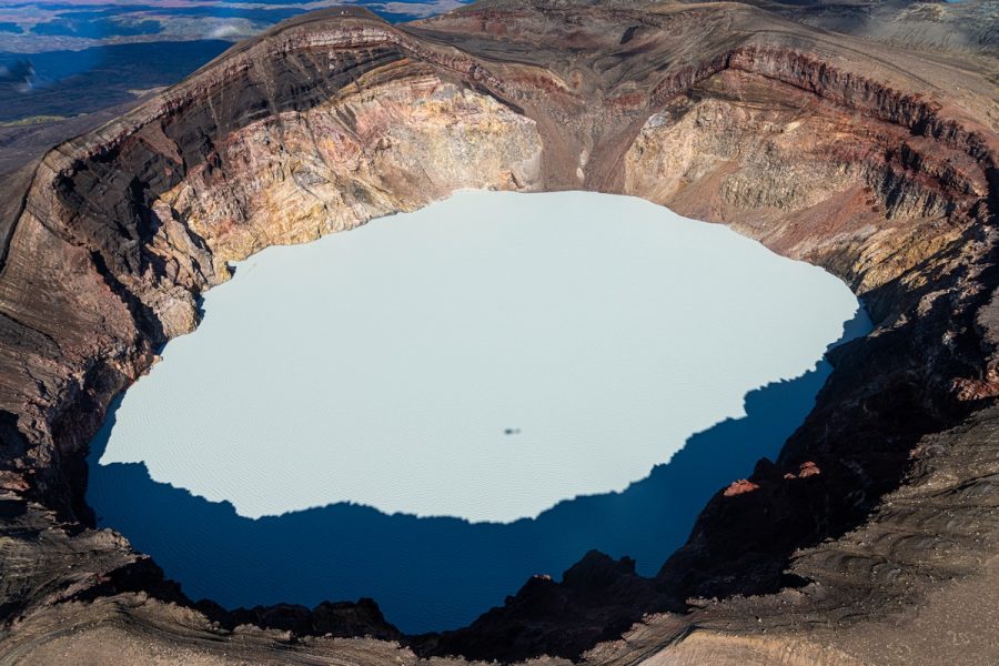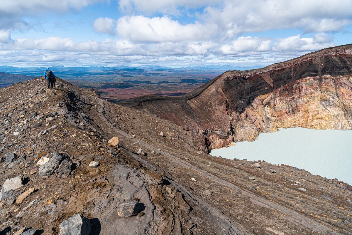 Kamchatka truly abounds in natural beauty, and here’s another precious gem in its impressive crown: the Maly Semyachik volcano, whose main feature is its rather sizeable crater (~800x900m), which cradles a stunningly colorful lake: