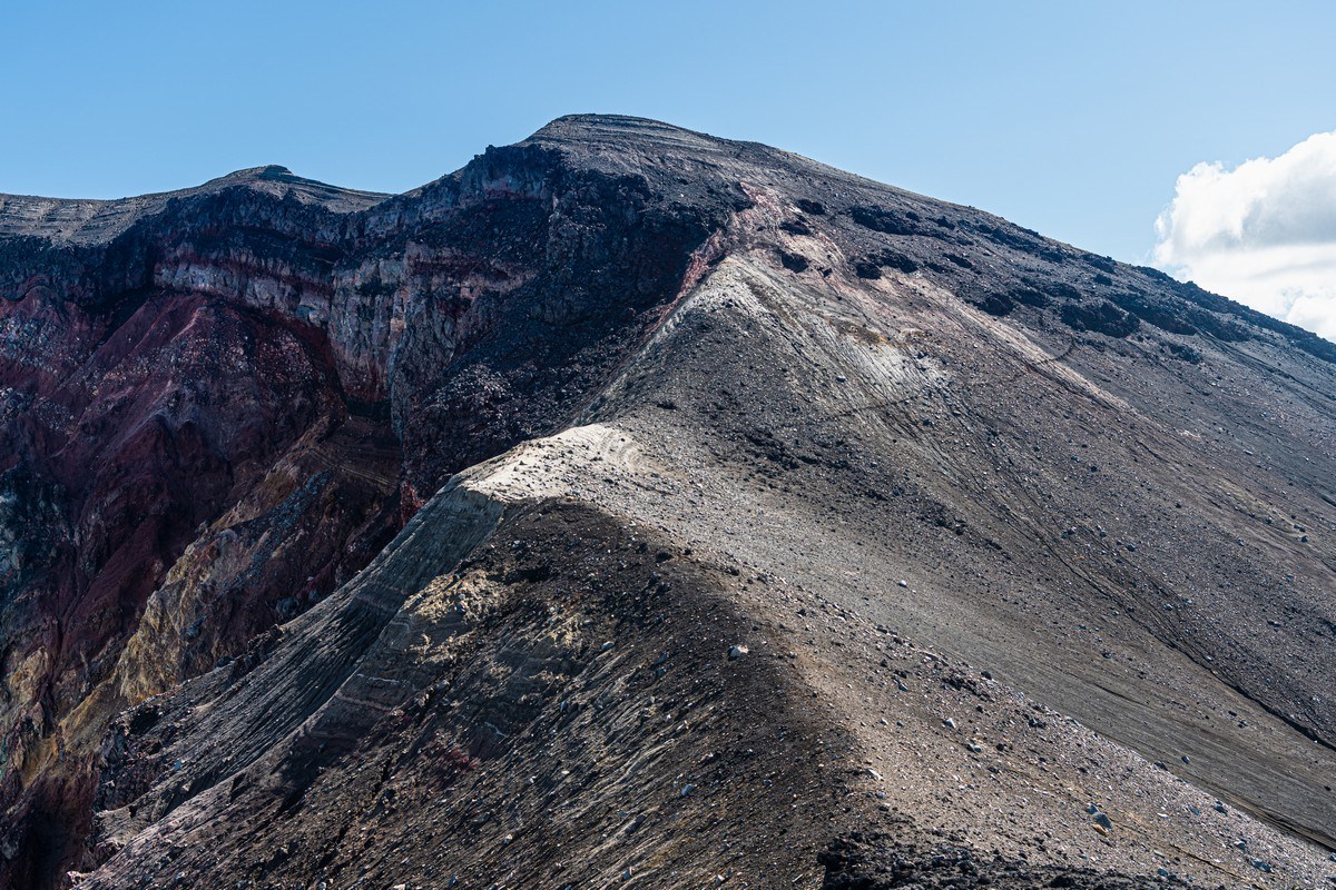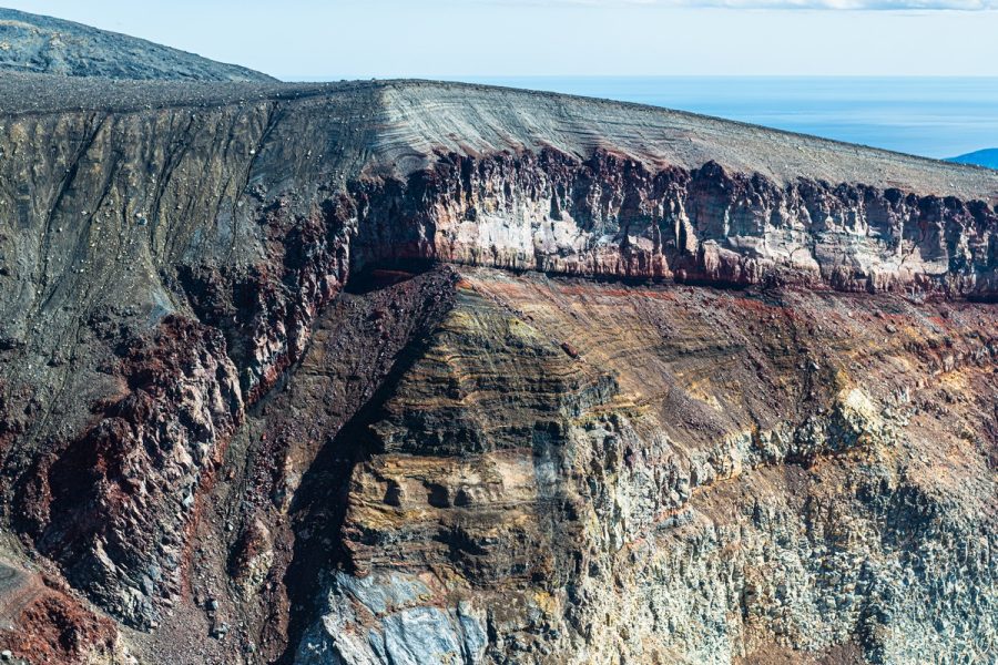 From the side the volcano looks rather unremarkable; you’d never guess such a marvel is hiding inside ->