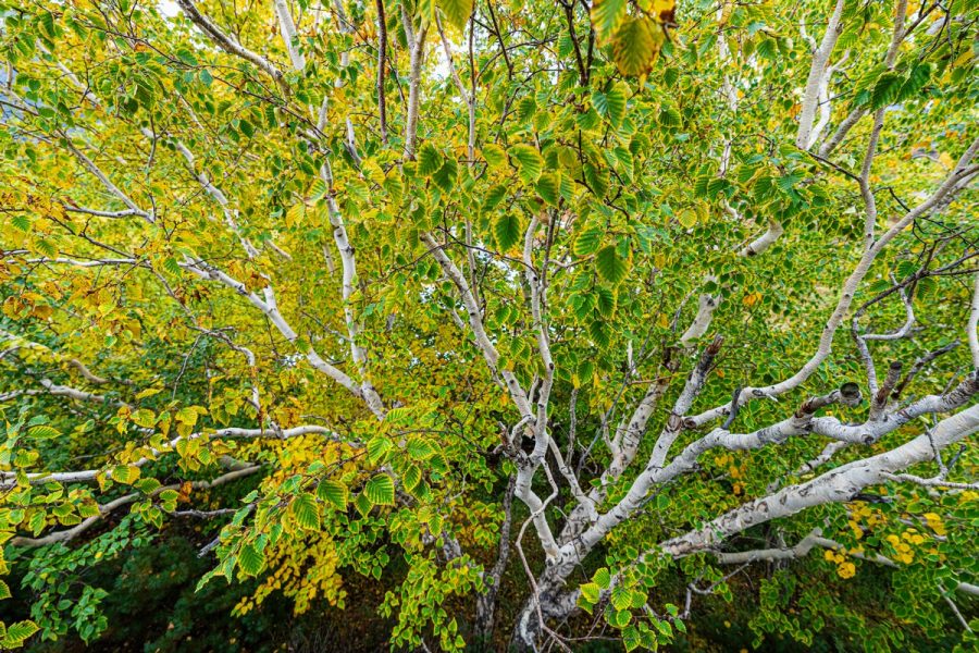 The autumn leaves on Kamchatka stone birch are simply picture-perfect: