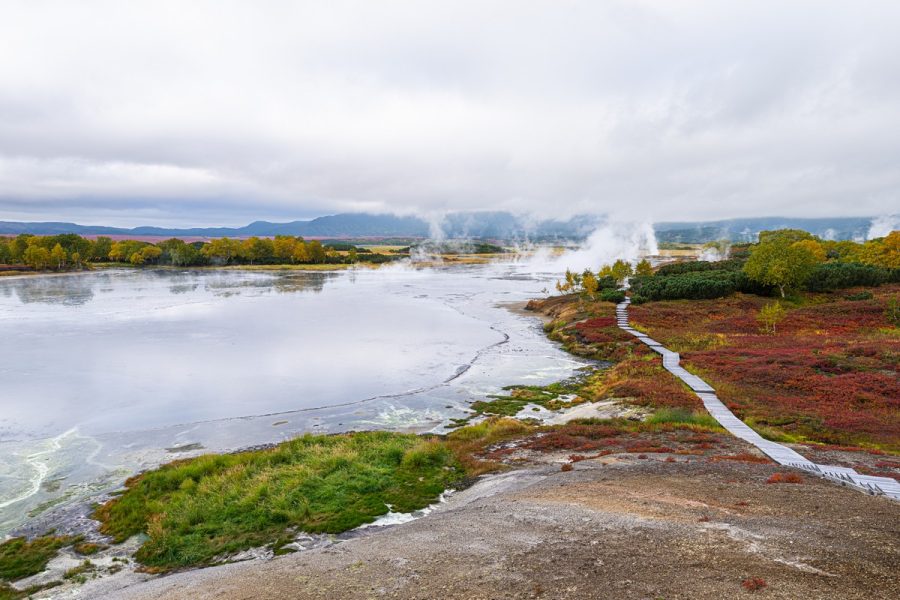 Now let’s take a stroll around the stunning Uzon Caldera – surrounded by the fantastical colors of autumn: