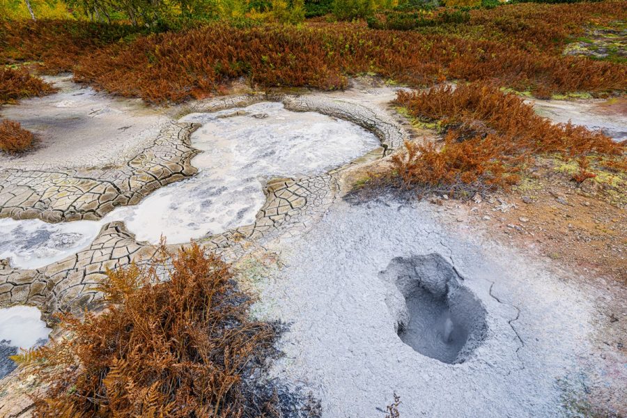 The mud pools bubble away all year round: