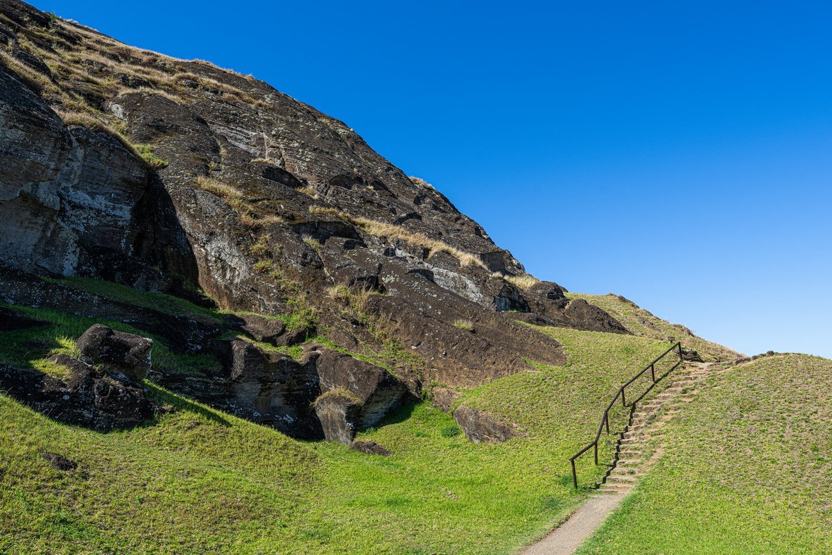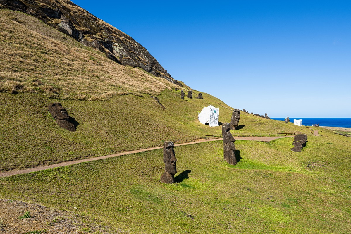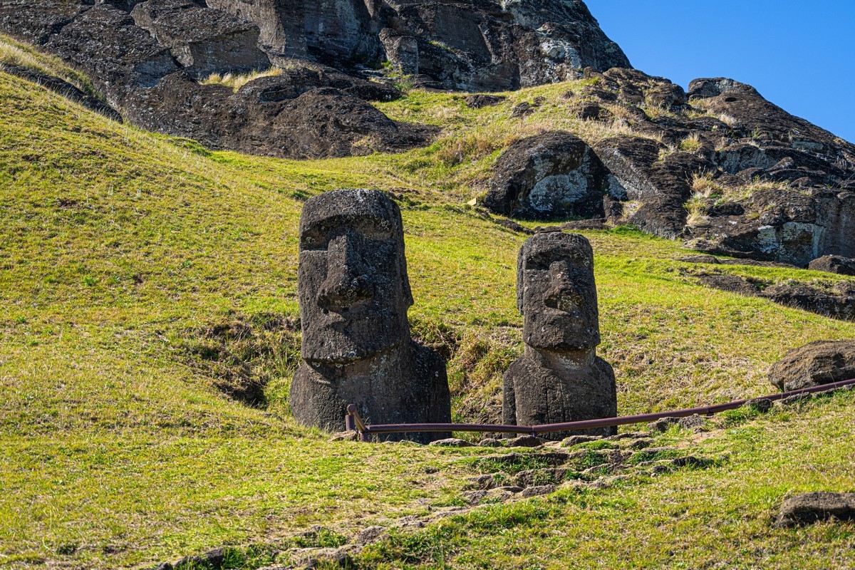 You can also find stone figures like the moai on other islands that are real far from Easter Island; however, there they’re much smaller. Here, the abundant volcanic rock took statue carving to a whole new level (in terms of both the statues’ sizes and their quantity).