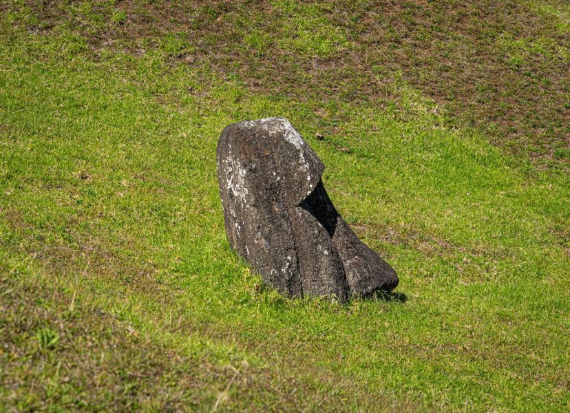 And the main thing they left behind – these moai statues, almost completely buried in the ground: