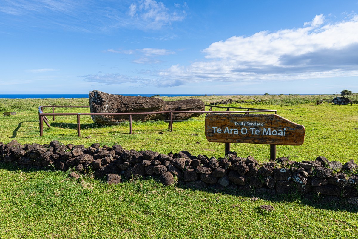 Beginning our roam-stroll, the first thing to attract our attention – a moai statue lying face down! Why, we wondered. Alas – no tourist info-plaques. Still, we’ve the internet these days, but it always gives a thousand conflicting theories. But I digress…