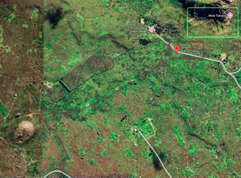 The further we walk, the more moai we come across similarly face down along the trail we were on ->