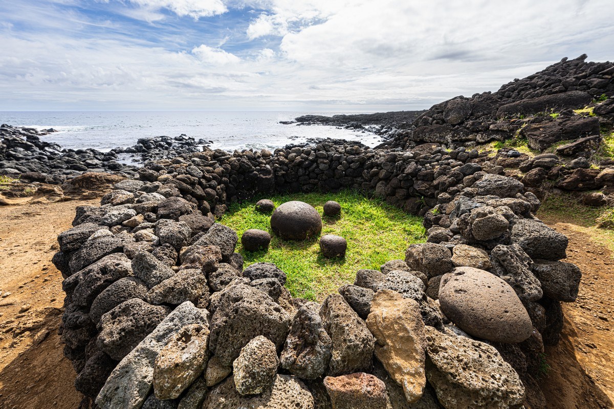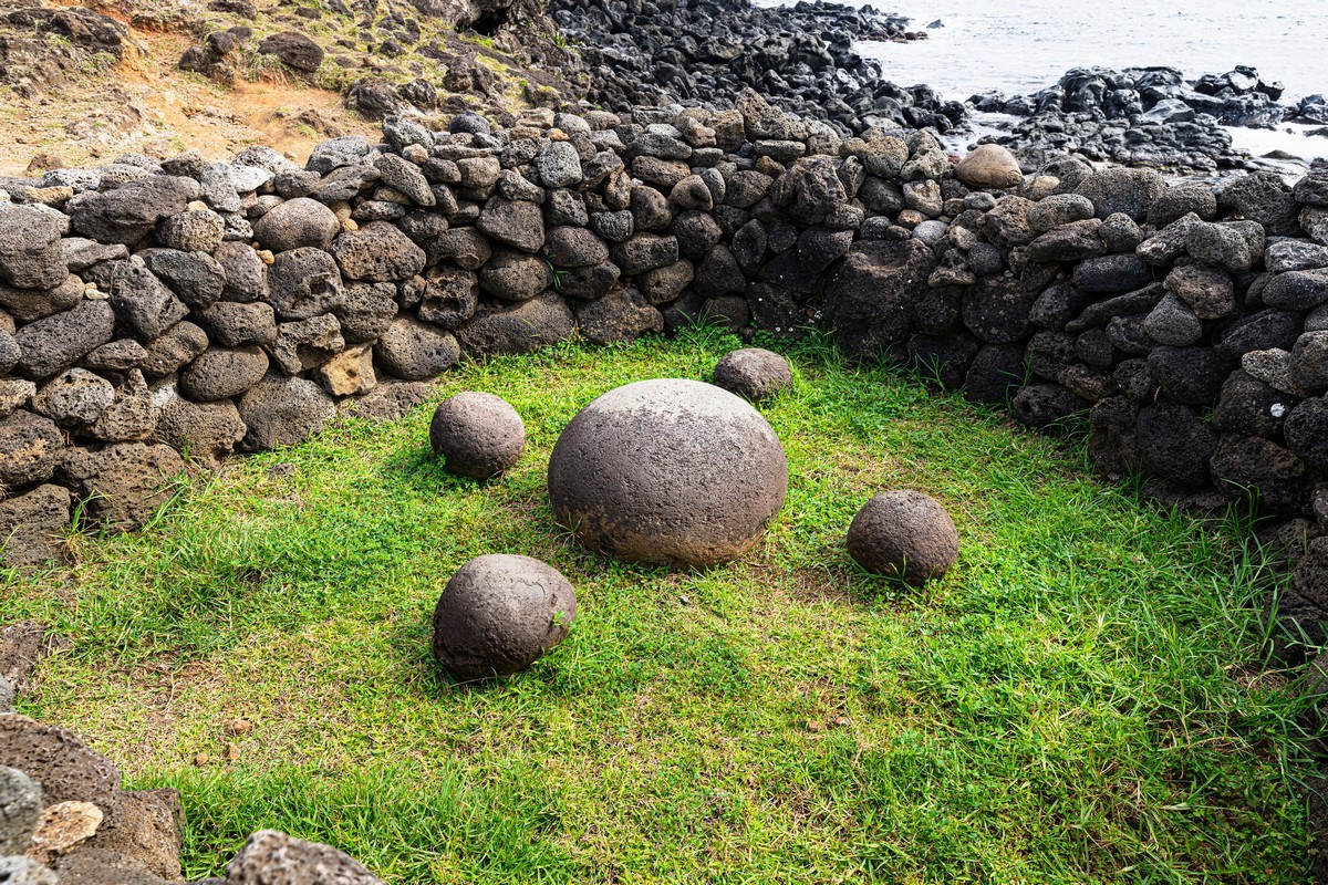 Legend has it that these spheres were brought from other islands during the Polynesian migration across the Pacific, and are magical – possessing supernatural energy called mana. The locals also refer to this spot as the “navel of the world” ->