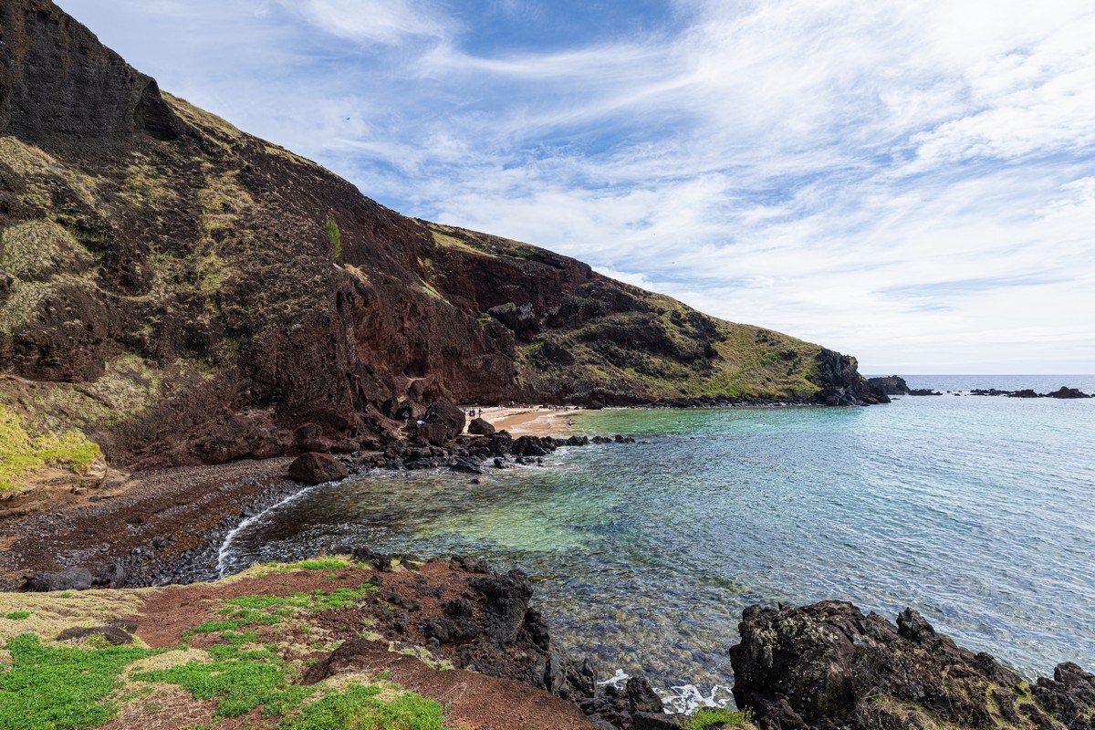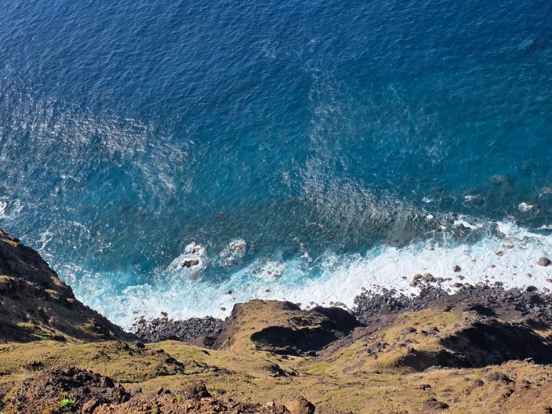 Here’s the end-point of our walk: Ovahe beach. Should we take a dip? After taking a closer look at the cliffs, we decided against it. They don’t look too stable. Indeed, the guide confirmed that rockfalls are common here, and added that if we wanted to go, he couldn’t stop us, but he wouldn’t go himself. After that, we lost interest too.