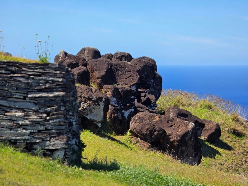 How could that be? Was the island settled by people from the Americas? That was a popular theory: Thor Heyerdahl even sailed across the Pacific on the Kon-Tiki raft to prove it. Later, genetic studies confirmed that there was contact between Polynesians and folks from northern South America (at least once) – DNA samples from Rapa Nui’s indigenous people and samples of plants unique to South America support this. And here’s a wall just like those in Cusco (the ancient Inca capital) – 4000 kilometers away!