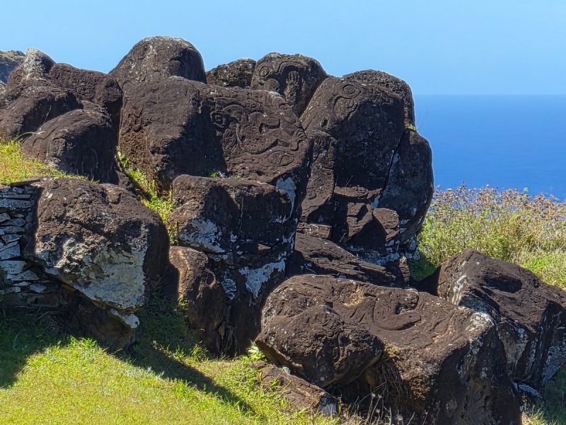 There’s also the still-undeciphered script called rongorongo, but we didn’t come across it on our way.