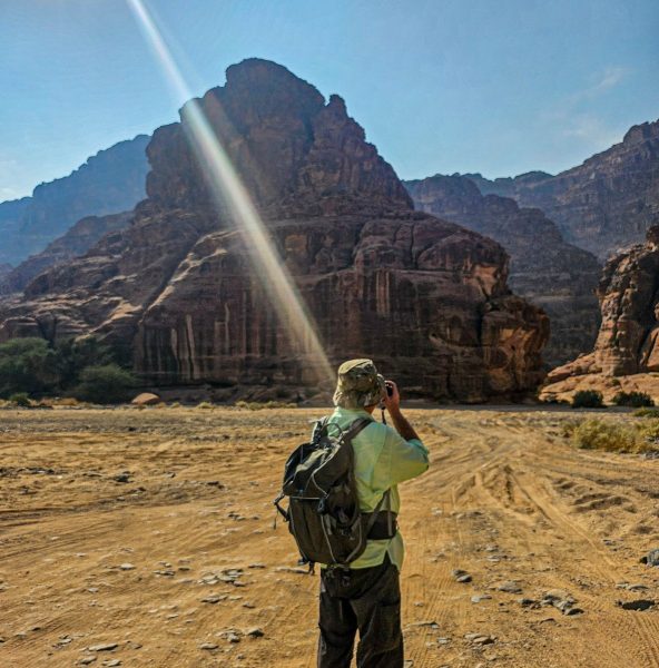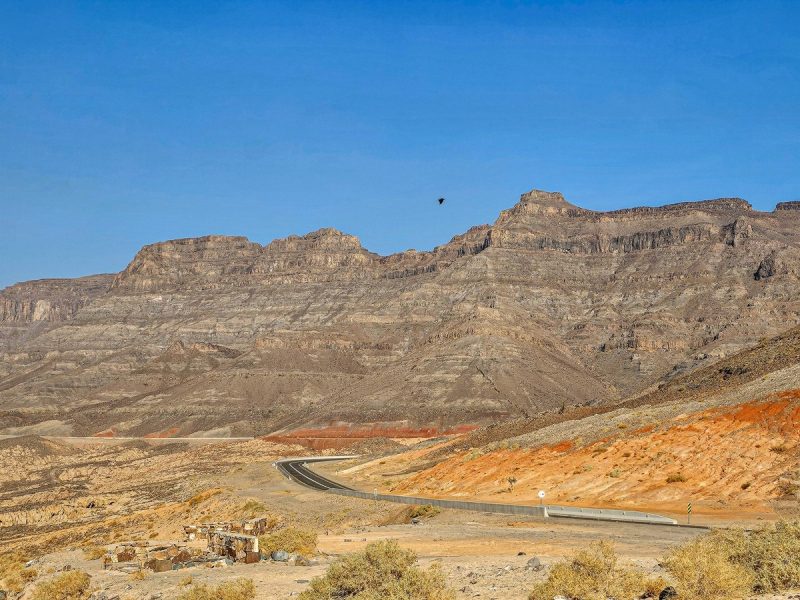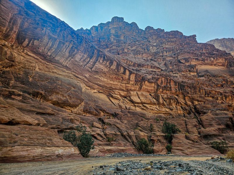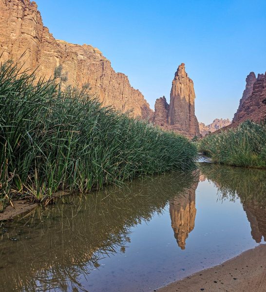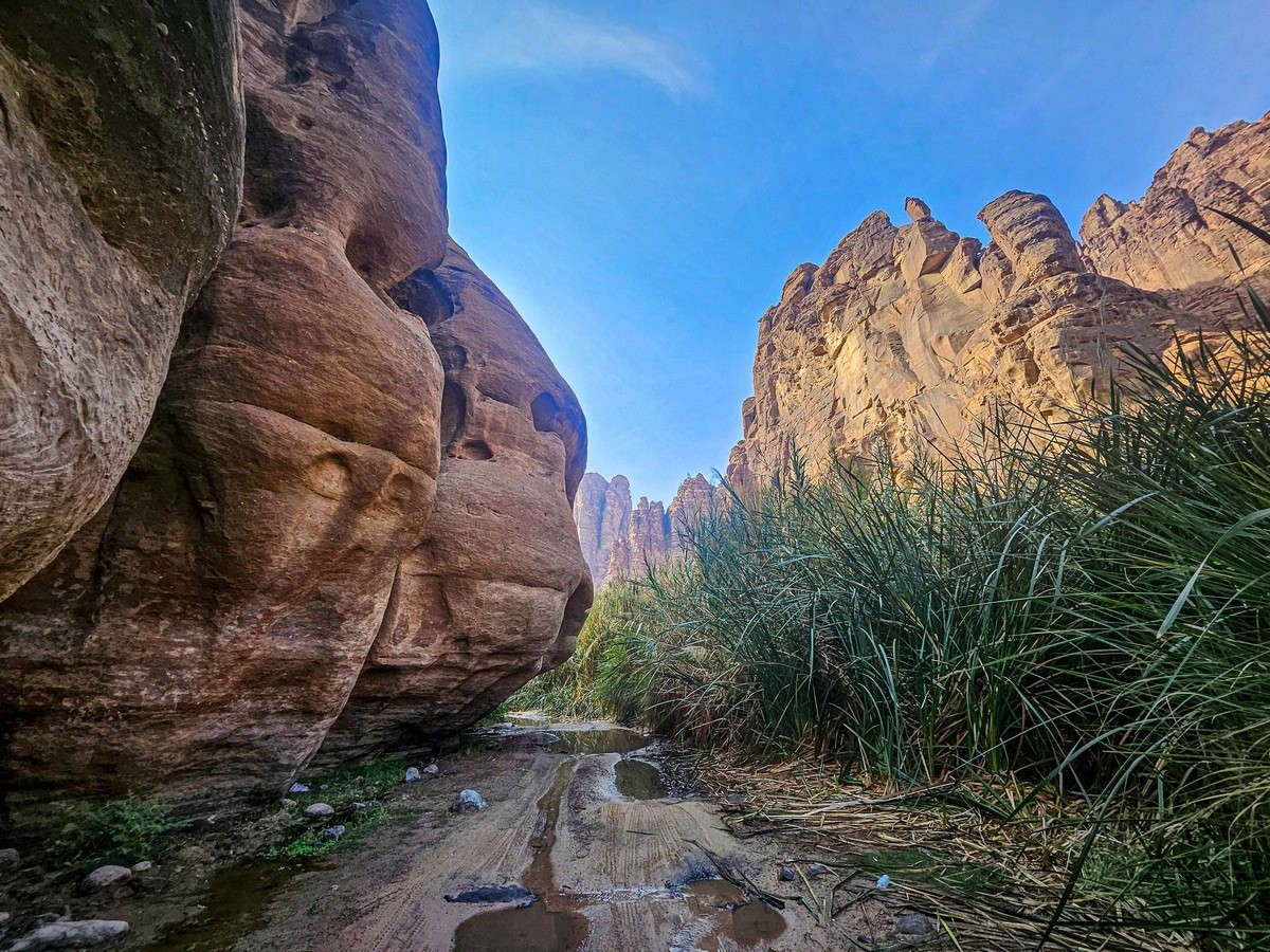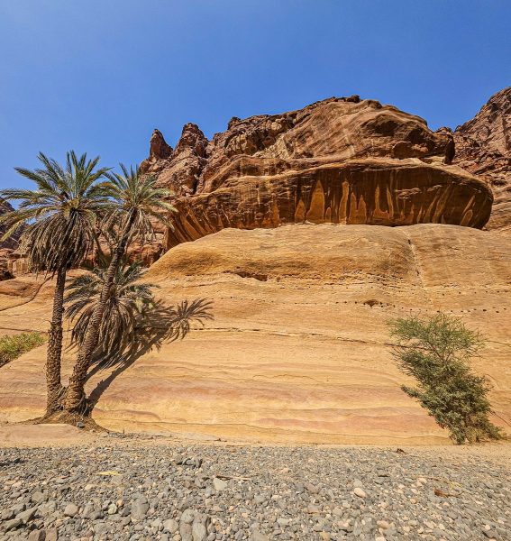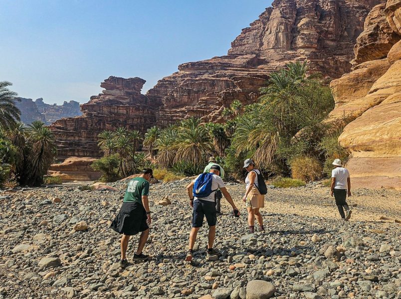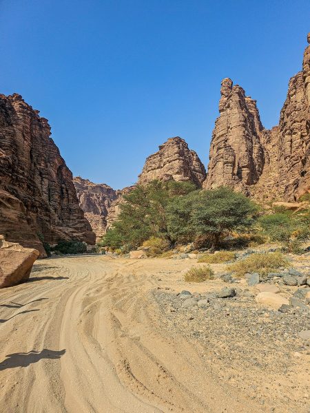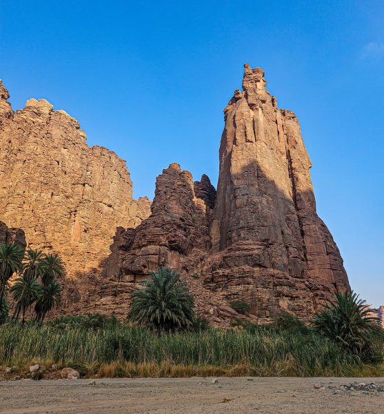 There was also time for tourism: I’d long planned to walk through the Wadi al Disah gorge – an amazing spot with mountain landscapes, cliffs, and palm trees. Stunning views! ->