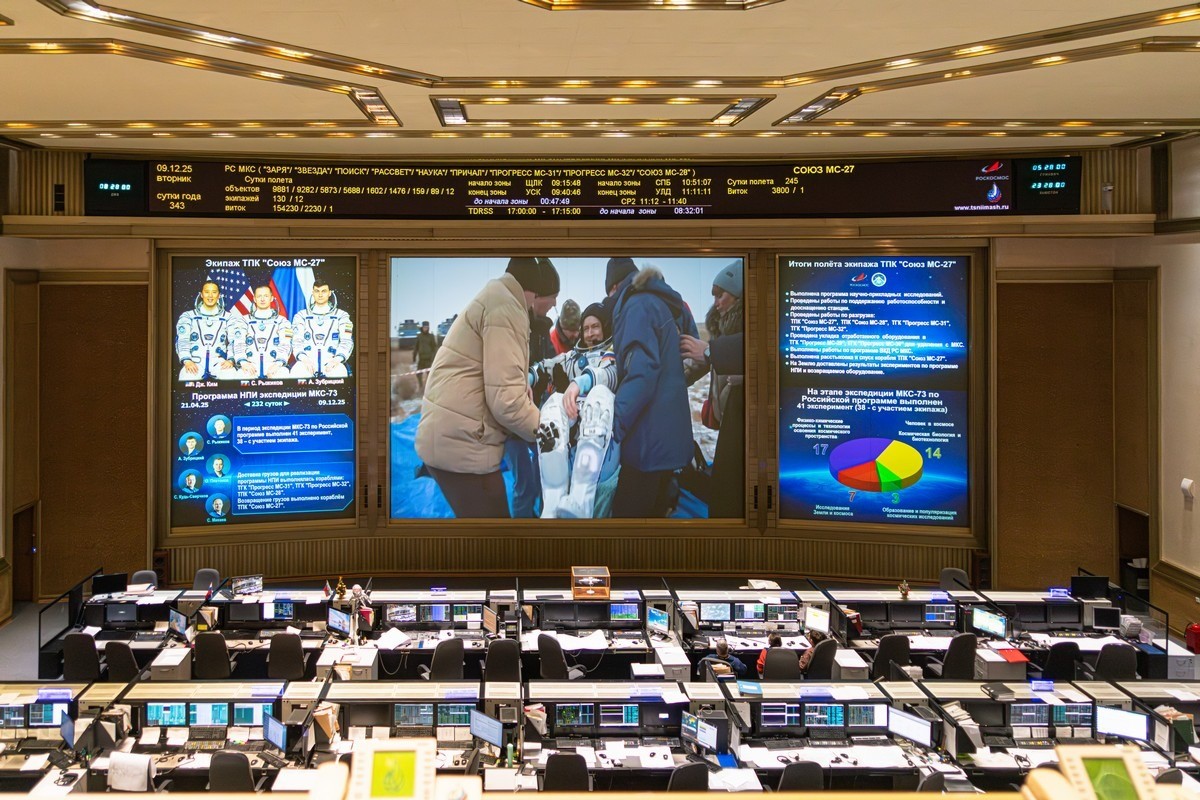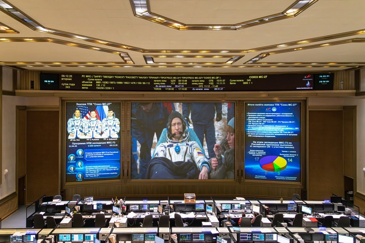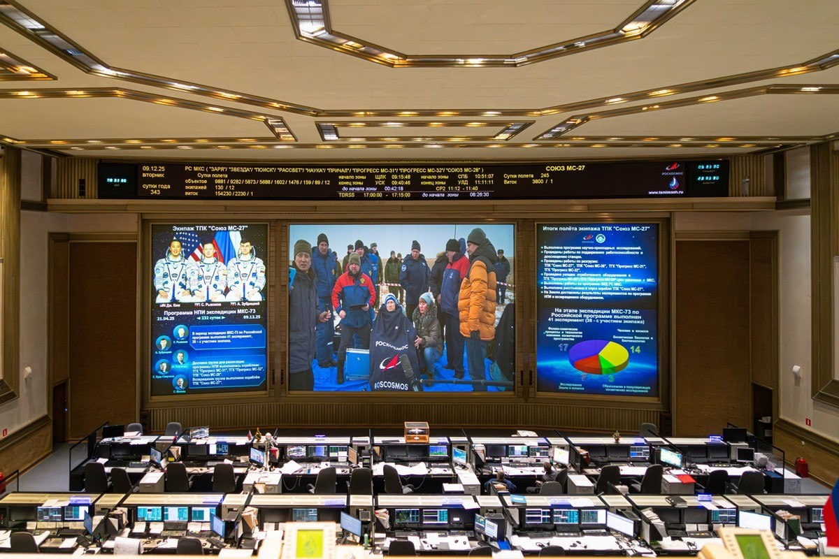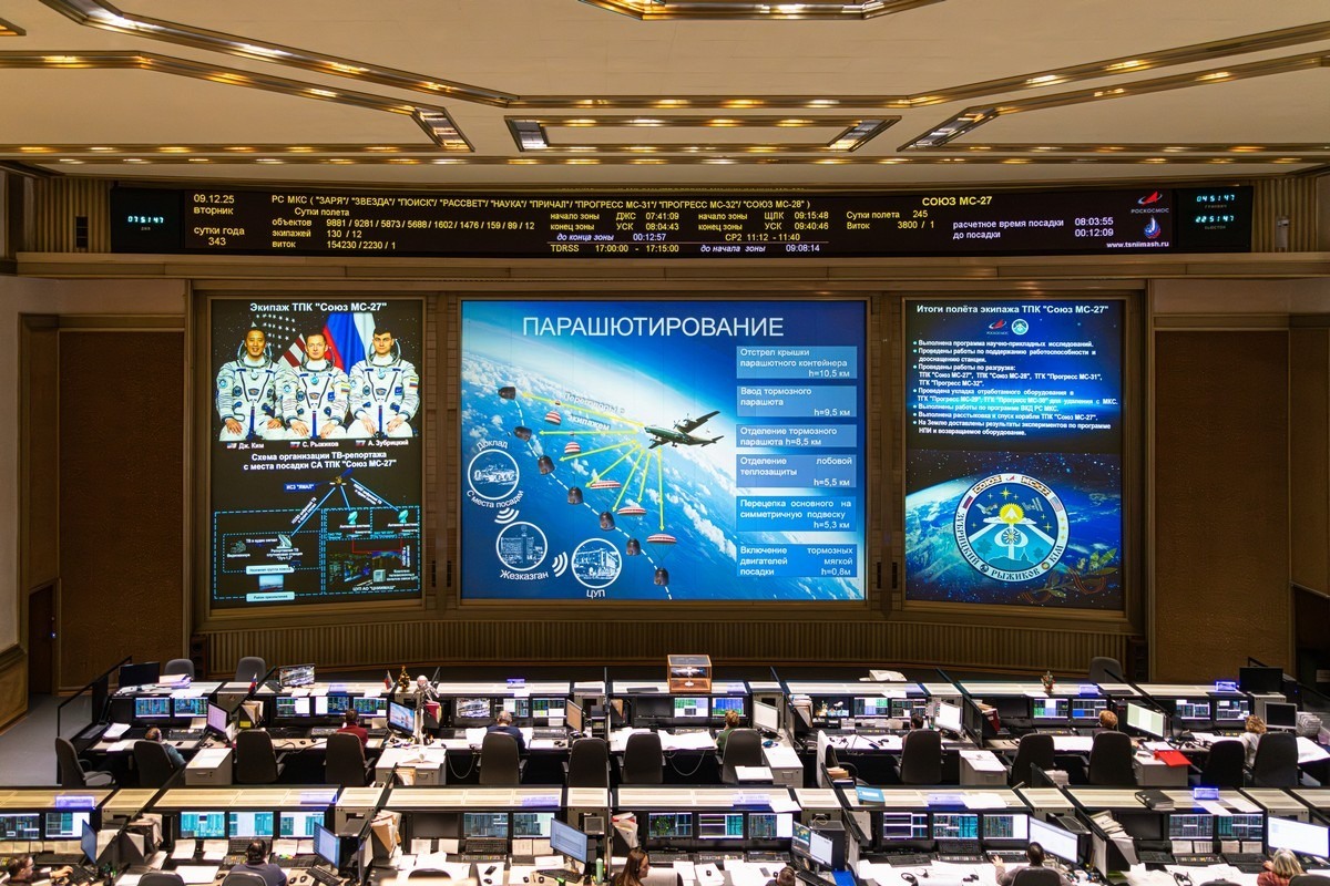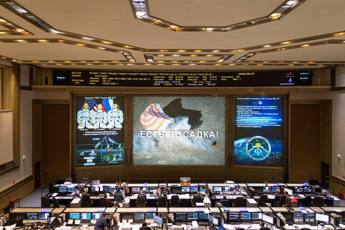 Yesterday I was lucky enough to personally watch the landing of the Soyuz MS-27 descent module from the RKA Mission Control Center in the town of Korolyov just outside Moscow. And it was a wholly interesting event! Surprisingly, taking photos was allowed, with the press up on the balcony reporting live. I too was up on the same balcony – and it all looked like this: