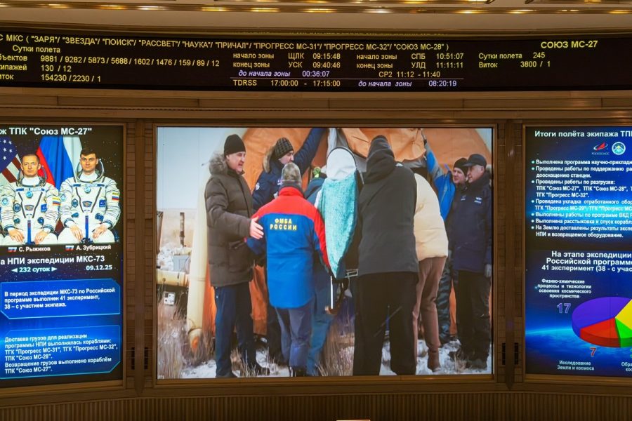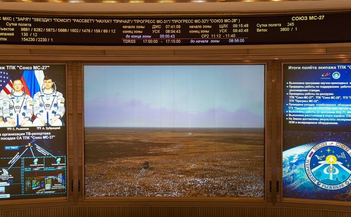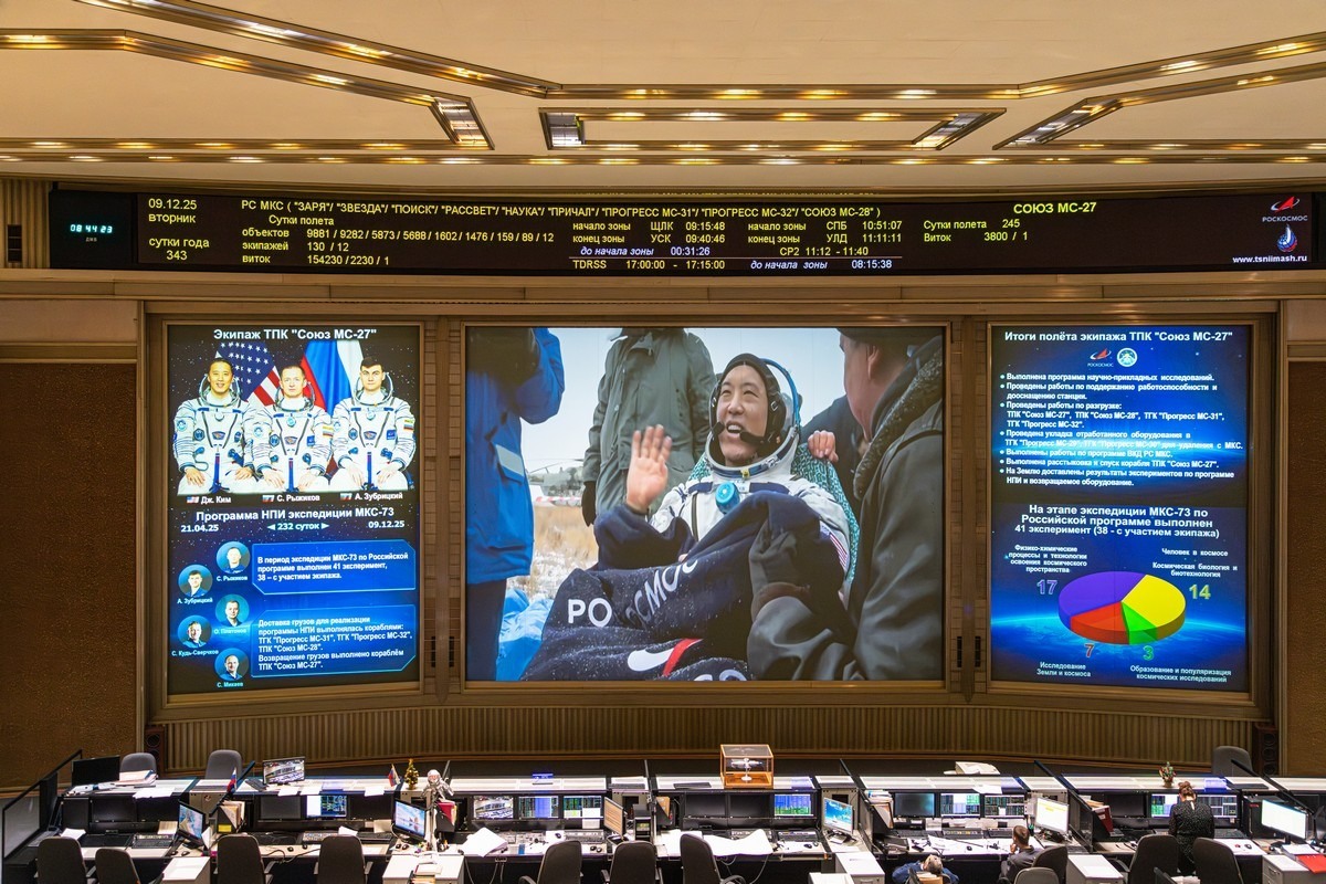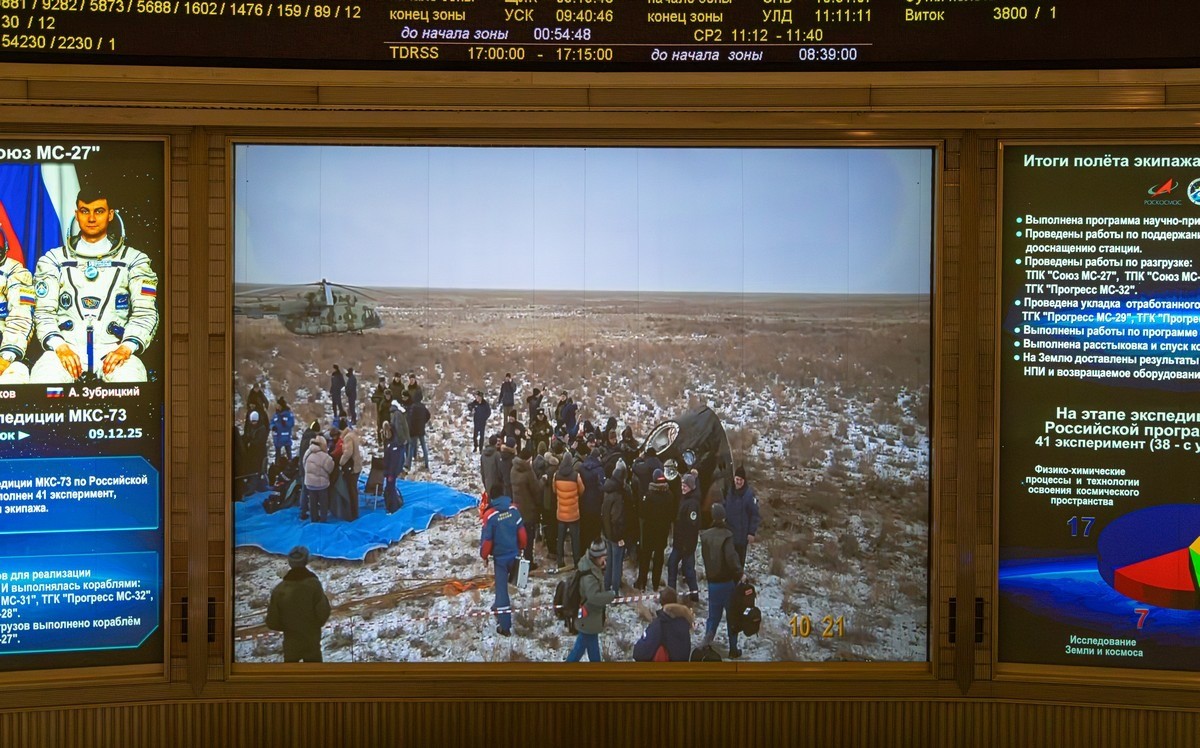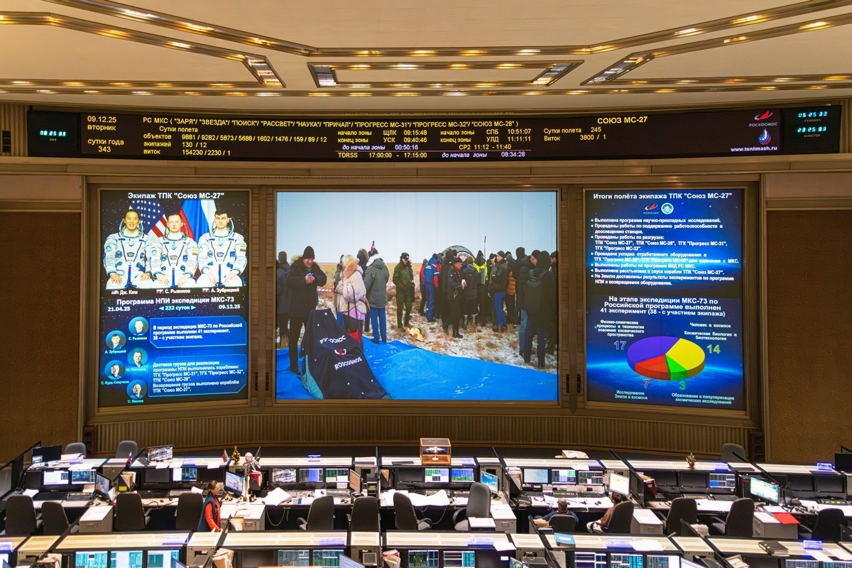 Yesterday I was lucky enough to personally watch the landing of the Soyuz MS-27 descent module from the RKA Mission Control Center in the town of Korolyov just outside Moscow. And it was a wholly interesting event! Surprisingly, taking photos was allowed, with the press up on the balcony reporting live. I too was up on the same balcony – and it all looked like this: