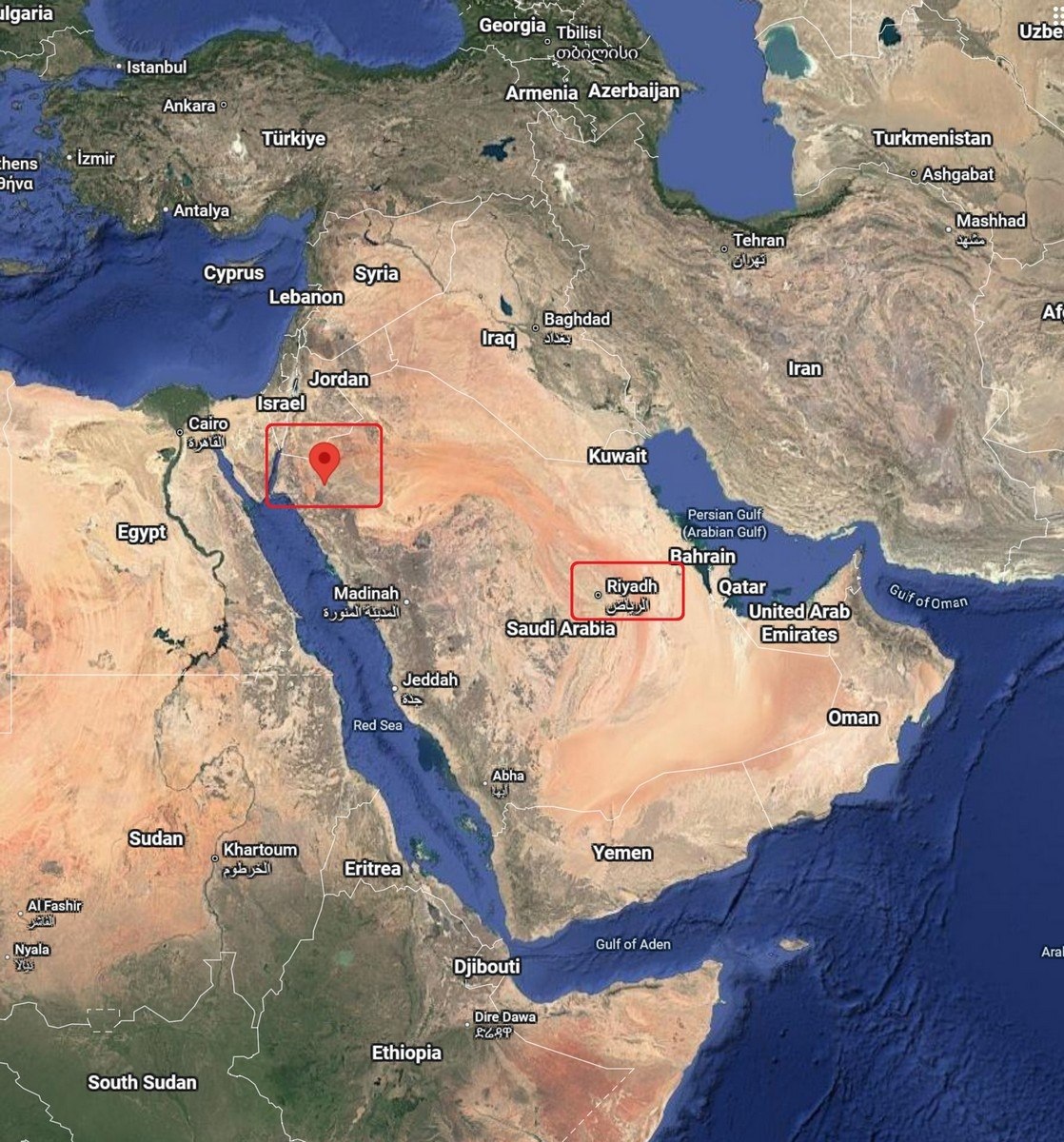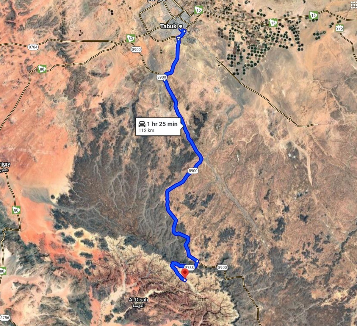 It’s located in the northwest of the country, not far from both the Red Sea and the border with Jordan – here, and here (with Riyadh also marked in red) ->
