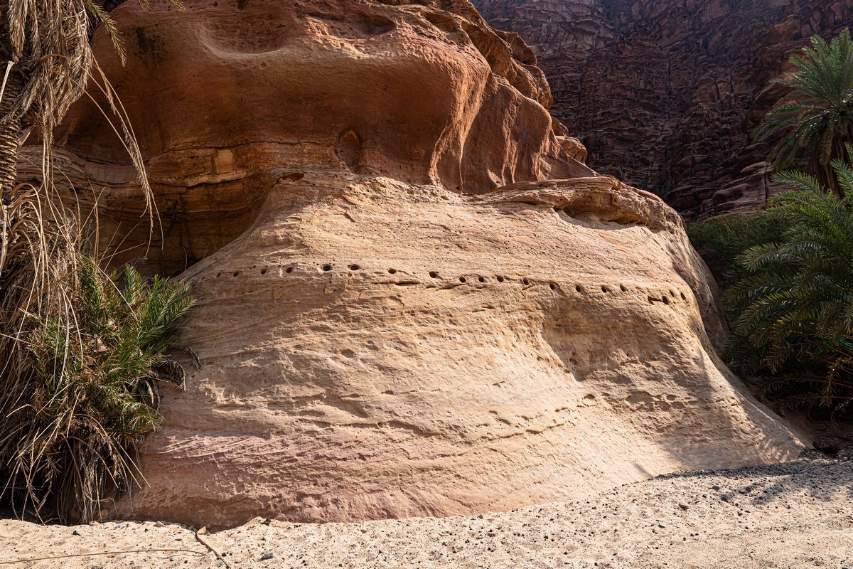 The mysterious holes more or less at the same level as the waterline apparently were made by Saudi Aramco. But what’s oil got to do with this place? Unclear and mysterious…