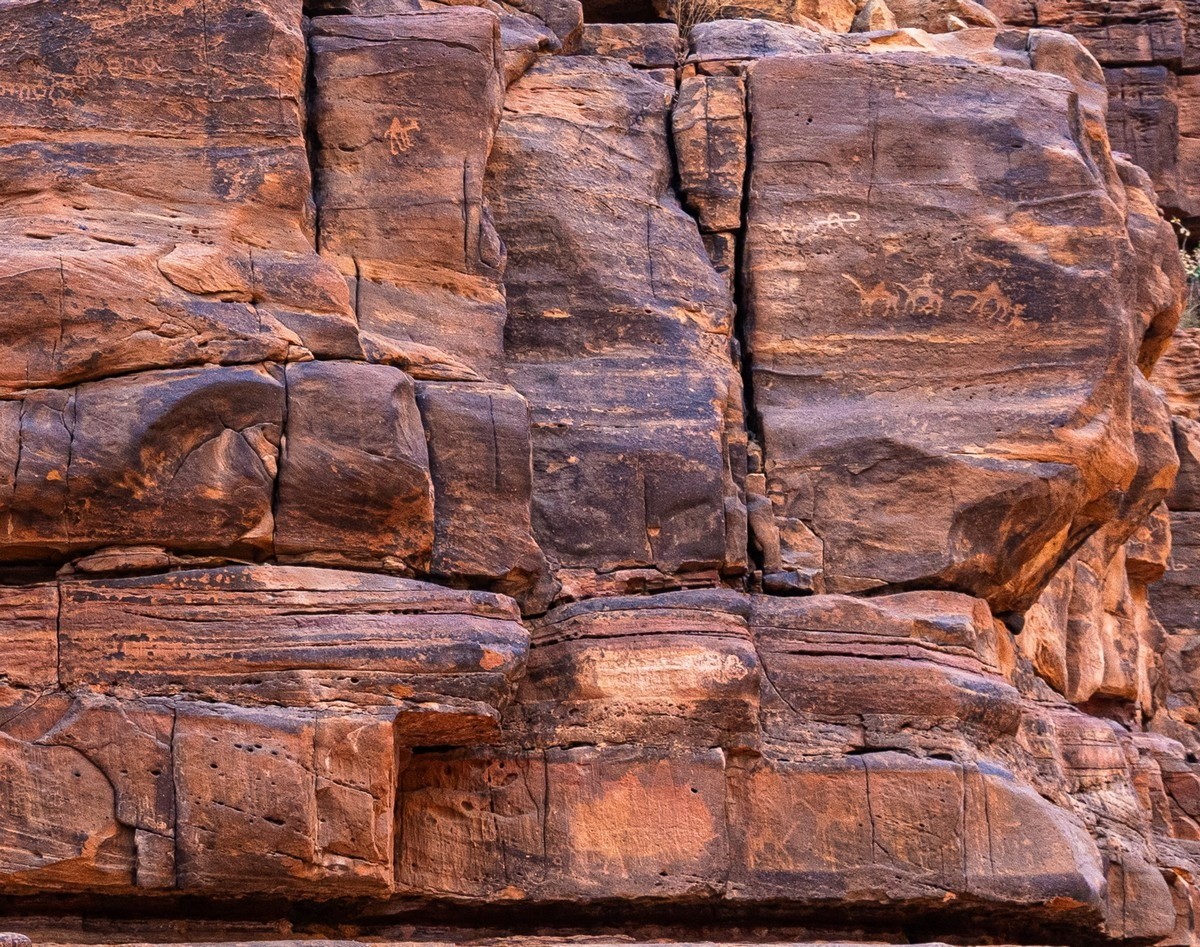 Depictions of camels scratched into the rock. I wonder how old they are…