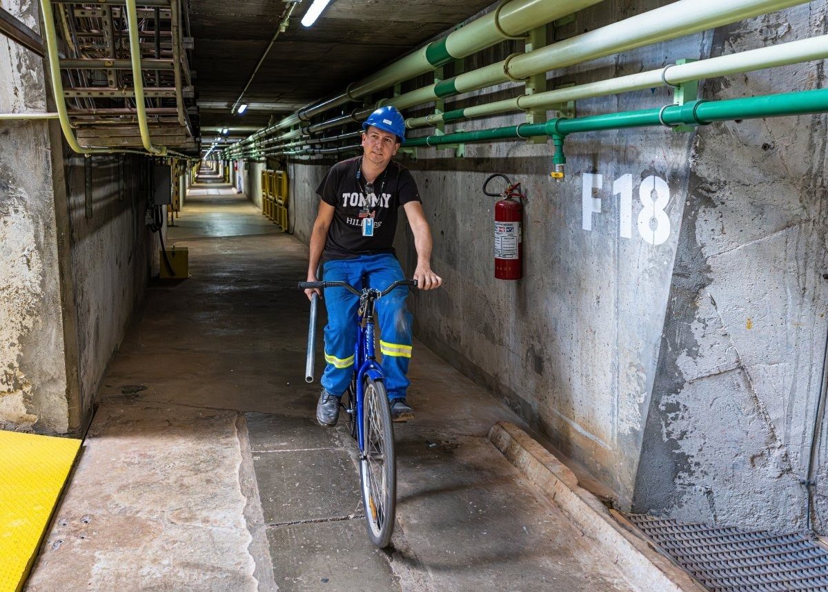 And since the distances here are big, the staff get around the dam on bicycles! ->