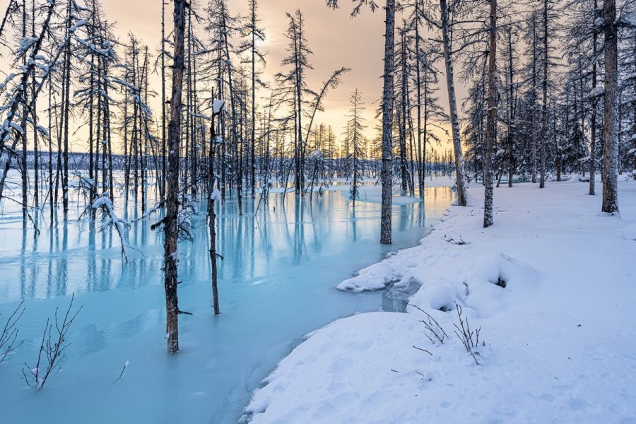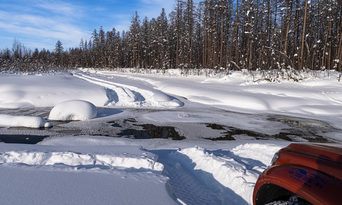 Siberia: ice, snow, impassable roads, permafrost – yes, all of that. Plus sudden water overflows onto the ice known as naleds: